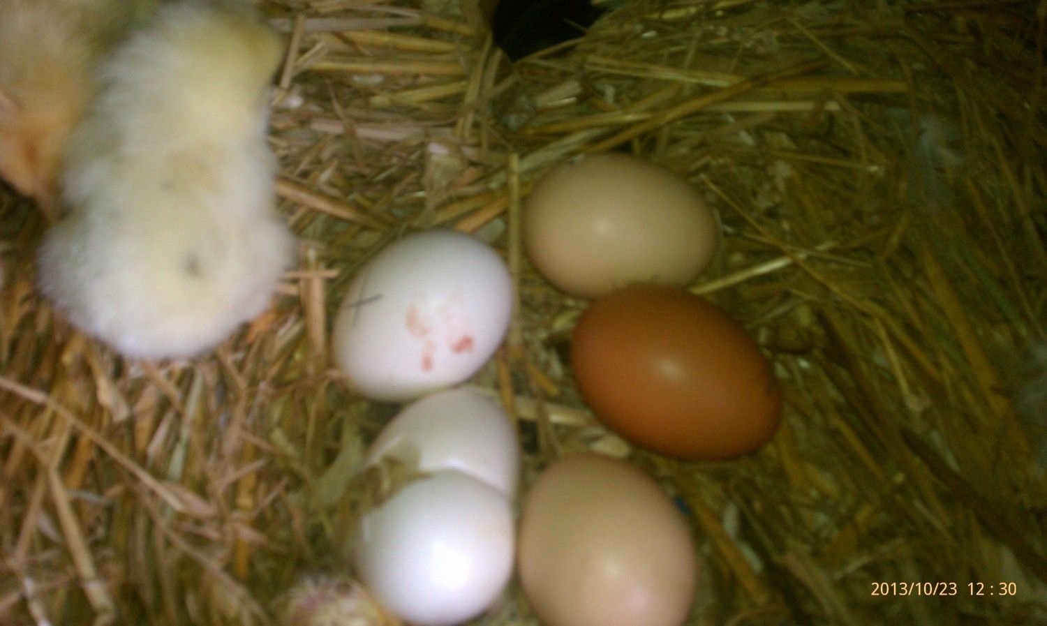 When will you be this way for feed again? I am more than willing to part with one or two of the new chicks if it'll be in the next couple days. Got some more hehehe. Peanut abandoned her two (and hopped right onto a nest with only one egg in it) so I gave them to the other two girls. Hard to see but one had just hatched (right above the word "just") The black one is from one of our FBCM girls and has feathered shanks, might even be pure :fl So far one has died (umbilical wasn't detached or absorbed) and 5 more have hatched with 3 more externally pipped or zipped. If it's for a profile pic I would go with the third, if it's for the banner I would go with the other maple.