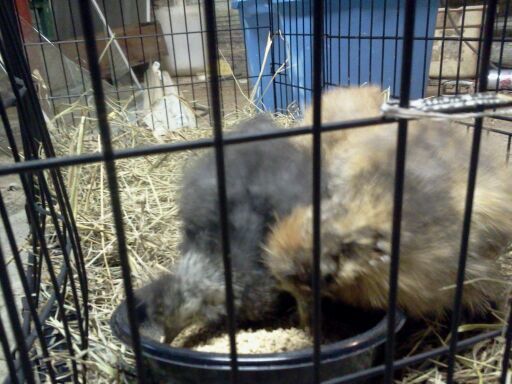 Here are my silkies I just got home with a little bit ago. They are 6 weeks. They are my first silkies. I do have a question, are they big enough to not put marbles in there water? This is the first I've had chicks. I figure they are big enough to not drown in the water, but didn't want to be wrong.