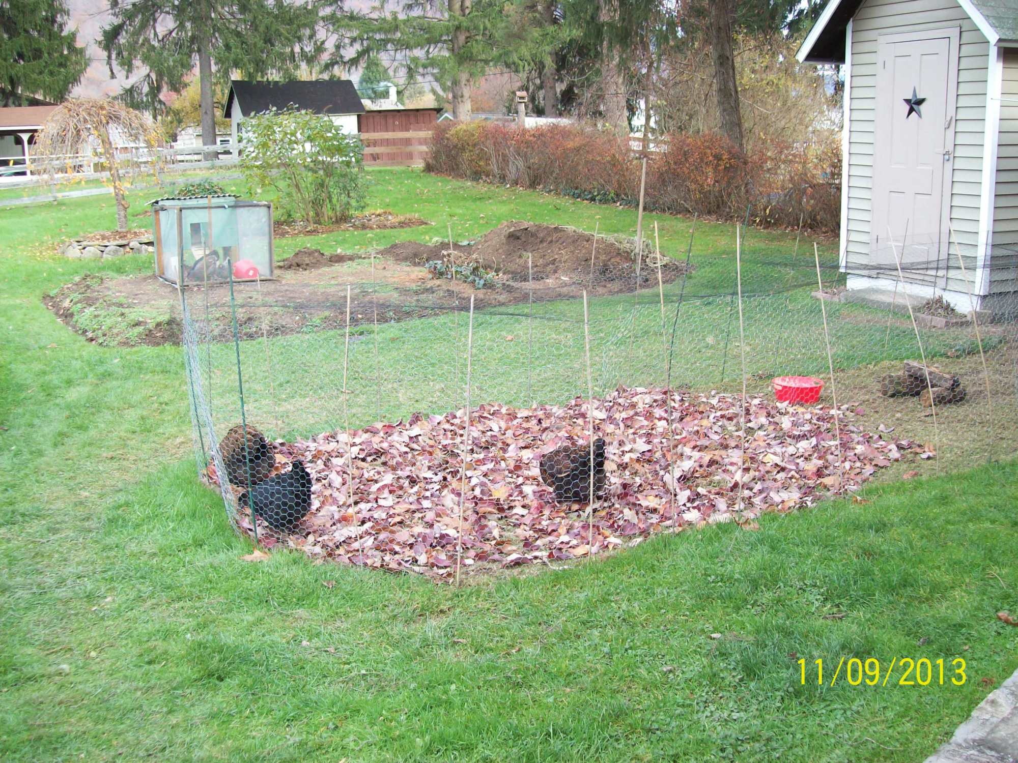 Great idea.... along the same lines... you can lean 2 of them against each other, creating a structure that looks like a tent sort of . Halfway down the opening on each end just screw a board across to act as a brace. To brace the 'peak', cut a square out of a piece of plywood about 8 or 10 inches square, then cut it in half from a corner to corner, creating 2 triangles, screw a triangle onto the peak at each end. This will create a free standing structure you can place out in any open areas the birds like to roam in, or an open area they have to cross on the way back to their 'safe zone'.