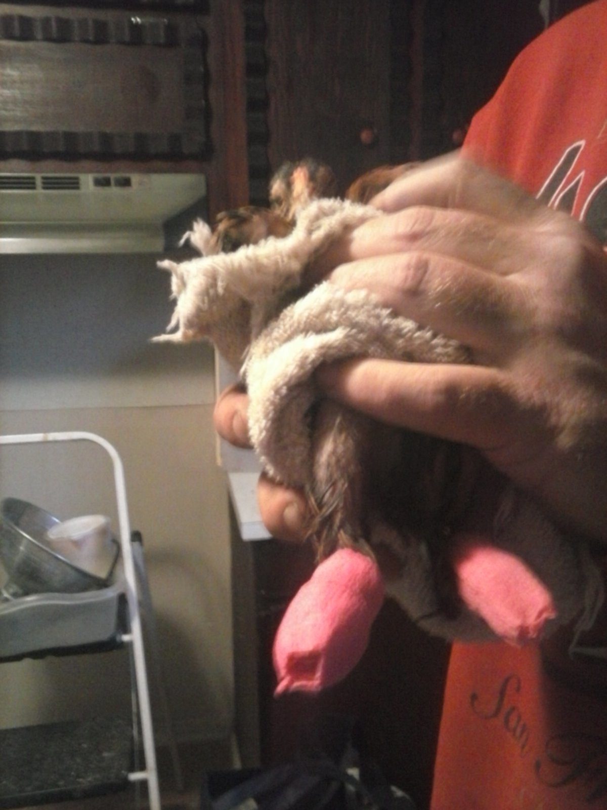 She's now back out in the brooder in the garage with 4 other chicks half her size. She tried to shake her boots loose a couple times but then decided a drink was a better idea. I'll unwrap her in about 2 days & see how she looks. She will be getting more electrolytes & antibiotics in her water for a few days.