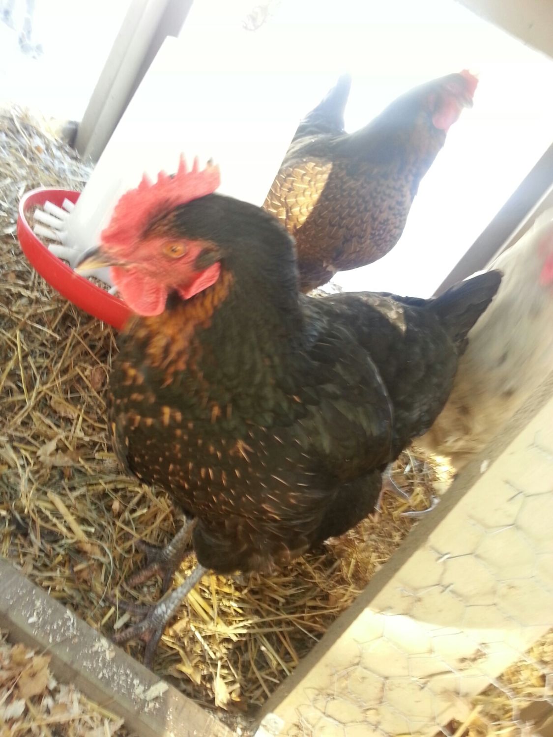 Any Idea what these little ladies are? I have two that look like the black one.....They were given to me about a month ago.. My guess on the red one is a Rhode Island?