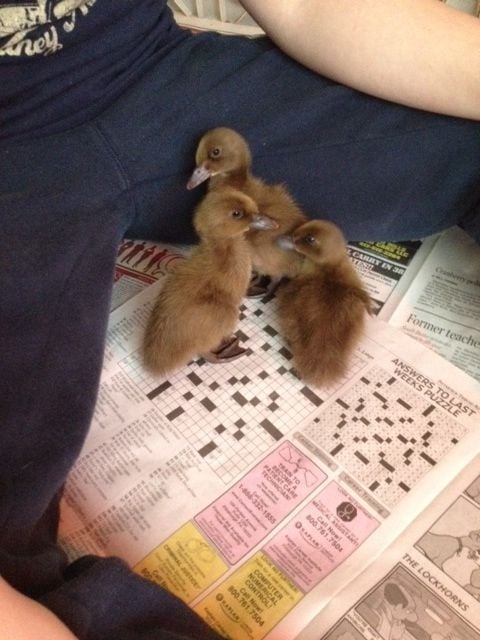 that is absolutely adorable! Do ducklings imprint or bond quicker then chicks do? I've had my chicks for about a week now and they love to flock to me for treats but only one will come out and jump up on my legs without treats (still looking for treats of course). About half of them have loosened up a little about me picking them up but only if I'm just moving them for a minute, they don't like to be held or cuddled. Am I on the right track here?