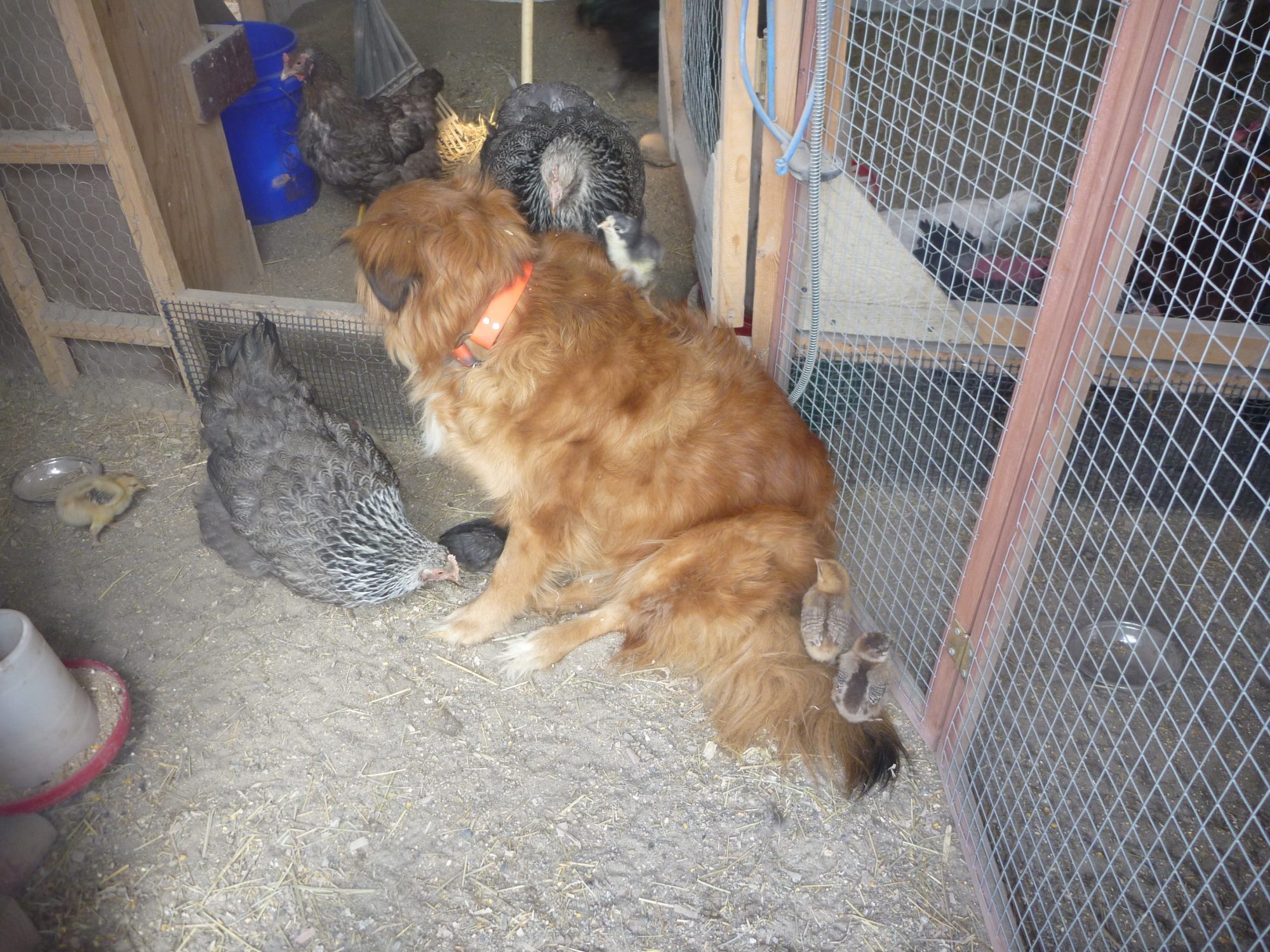 and Rosie's group have also decided that there is no reason to set on a cold floor, when there is a warm, fuzzy pup available for roosting on...