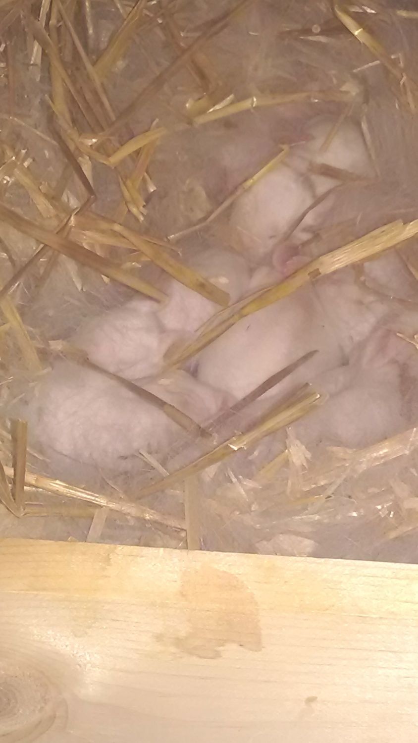 Took this on Tuesday. They were 4 days old. I thought there were 5, but in pretty sure there are more, I'll check closer this weekend. Art least I now know my young buck is up to the task. First litter for both parents.