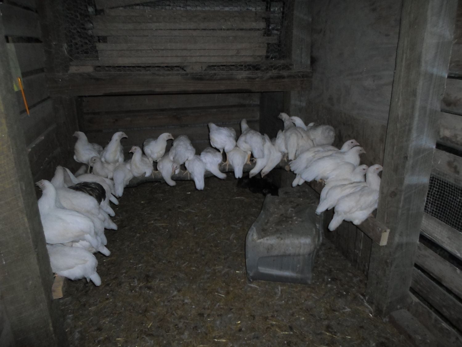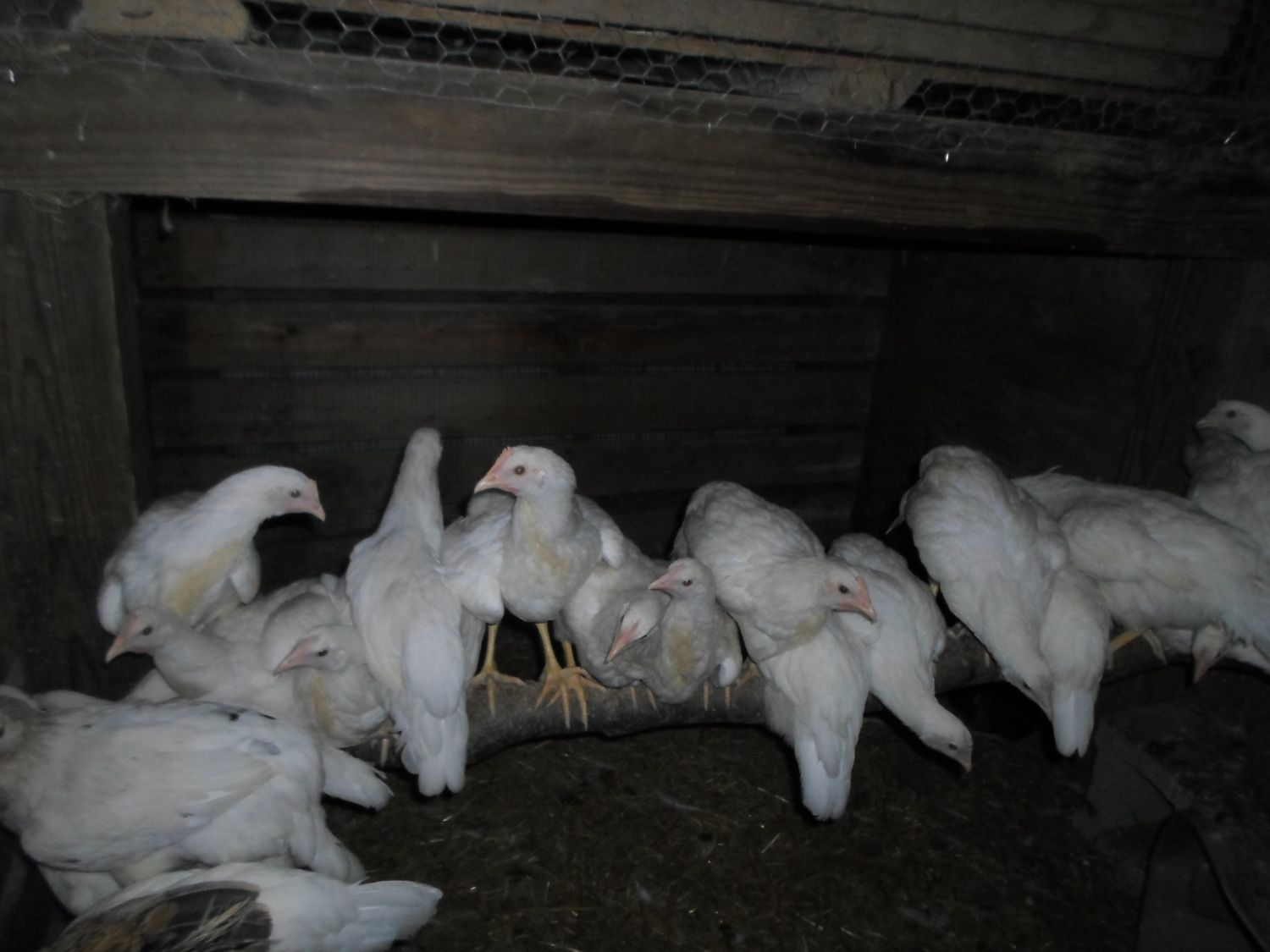 I'd love to know how he managed to get 30 birds at TSC and wind up with all pullets??? I think someone packed a hatchery flat wrong! I would hate to have been the person who got the crate these girls were supposed to be in! About now they are realizing they got a flock of roos!I know these are hatchery birds and not quite the same but here are the 30 some birds that hubby got from tsc, all in a grow out pen and about 11 weeks....I do not see any roosters, it should be evident by now,
