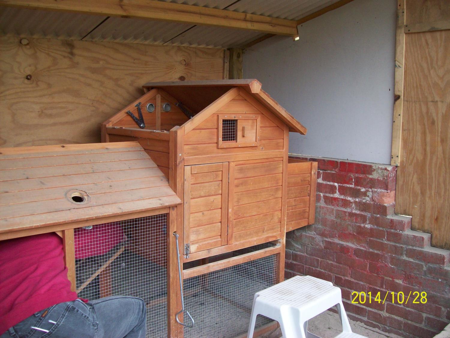 A bookcase given to me from Motorcycle chick has been converted into nest boxes..have made some roots from materials we have around..for now-they are temporary..we will be working on more permanent structures..when we have recovered from this endeavor....![]()