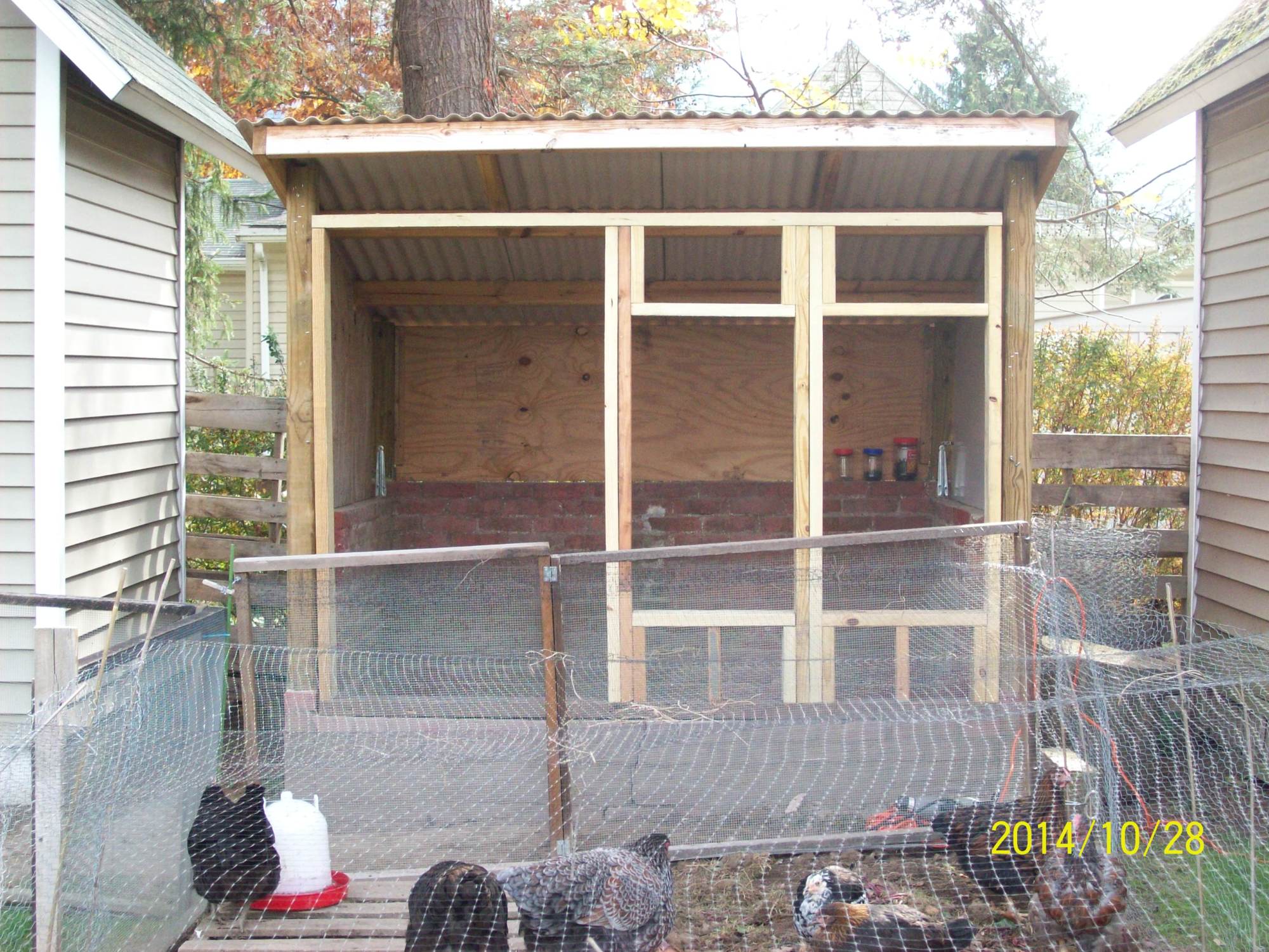 It has approx. a year & 1/2 to get it to this point. Next warm season we will be either painting or (if we can find the materials-free), siding the coop.
