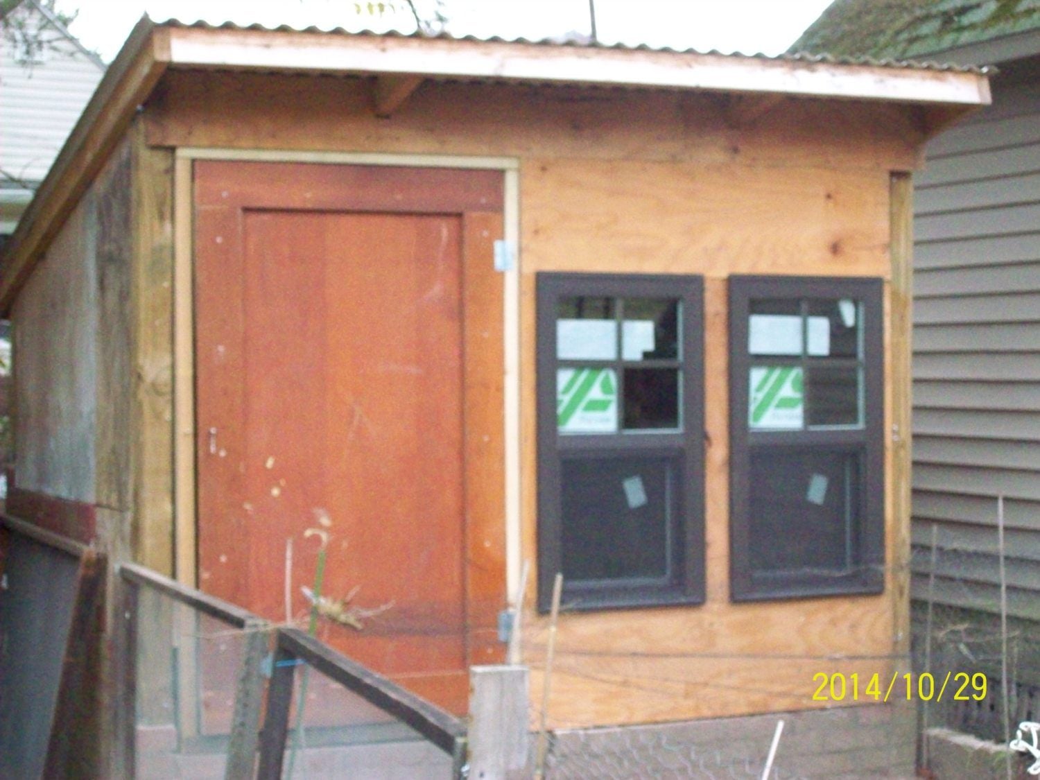 This coop "construction" was done with free/reclaimed/repurposed materials...we have only purchased (4-5) 2x4's to build the front wall..the windows were purchased at auction from my mother.