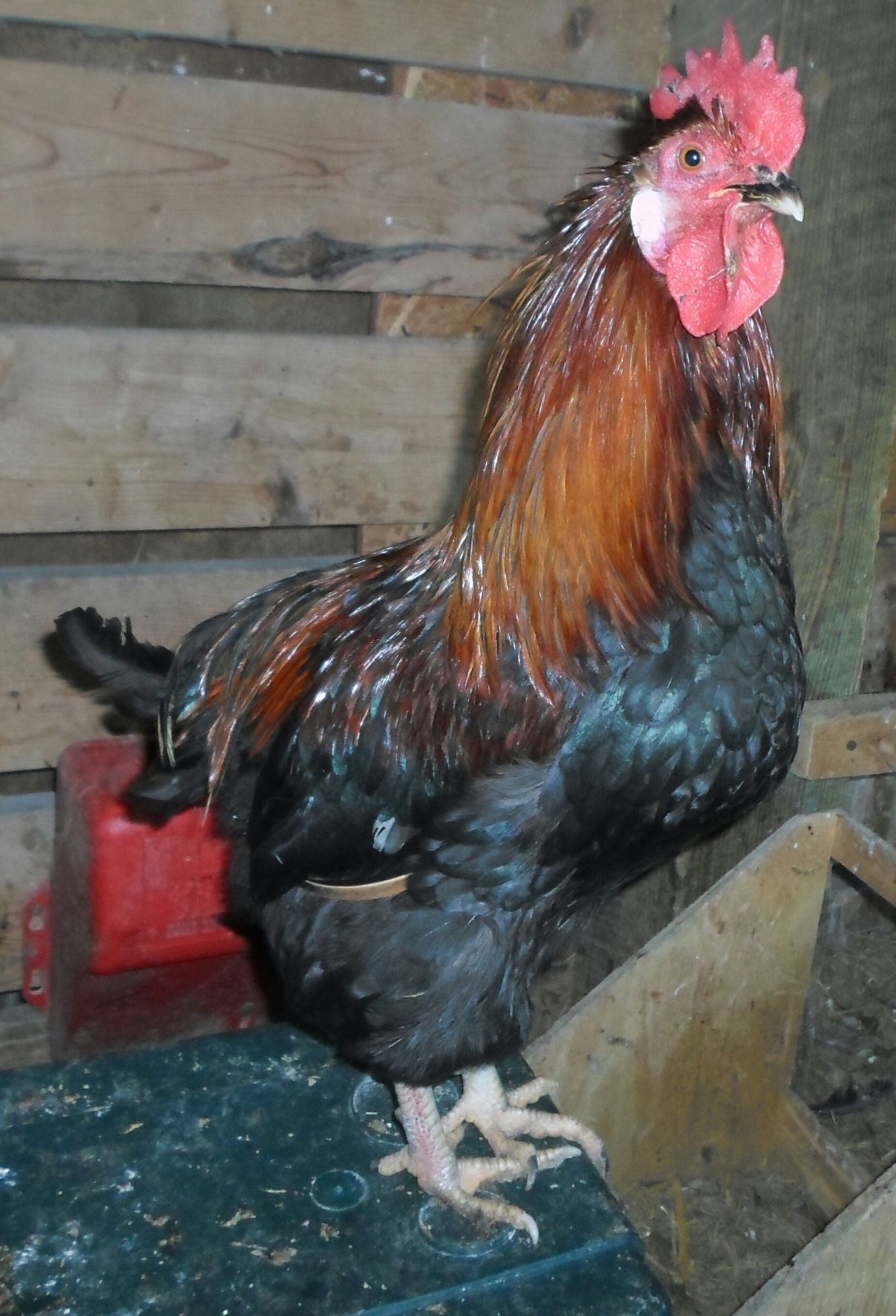 Getting dark, so a little hard for pics. This is one of the hedemora roosters in with bantam cCochin.