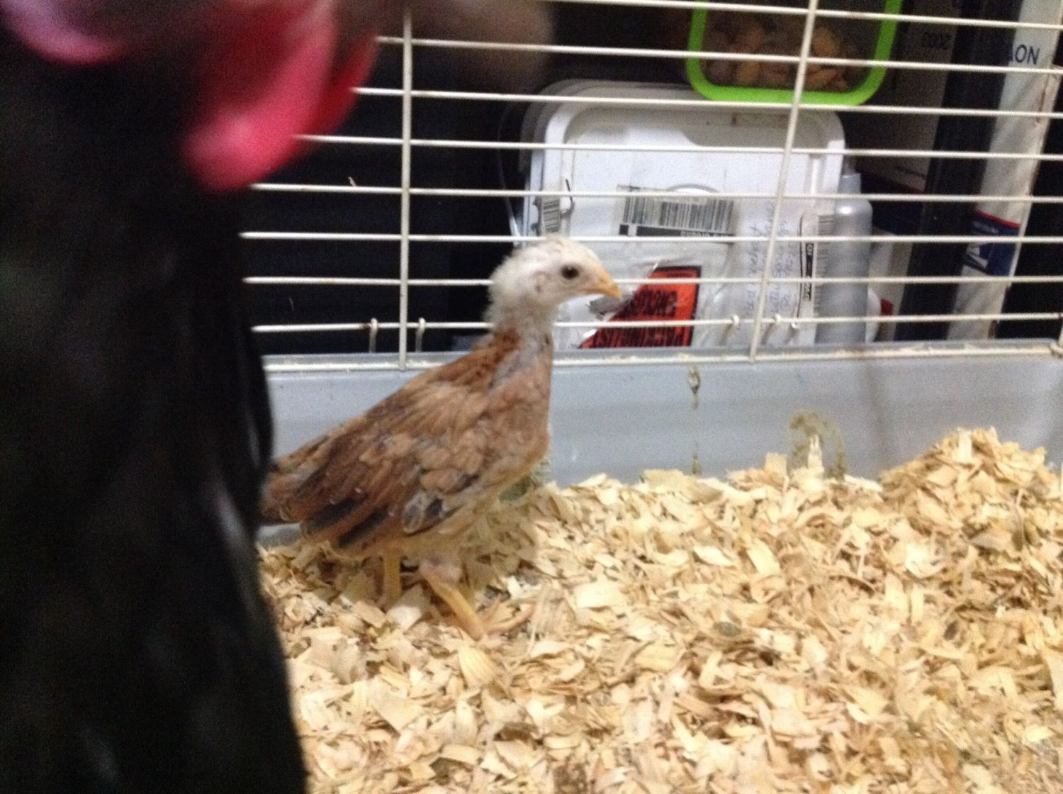 The little brown one is a pullet, not quite sure yet on the black one, but it does look like a rooster.