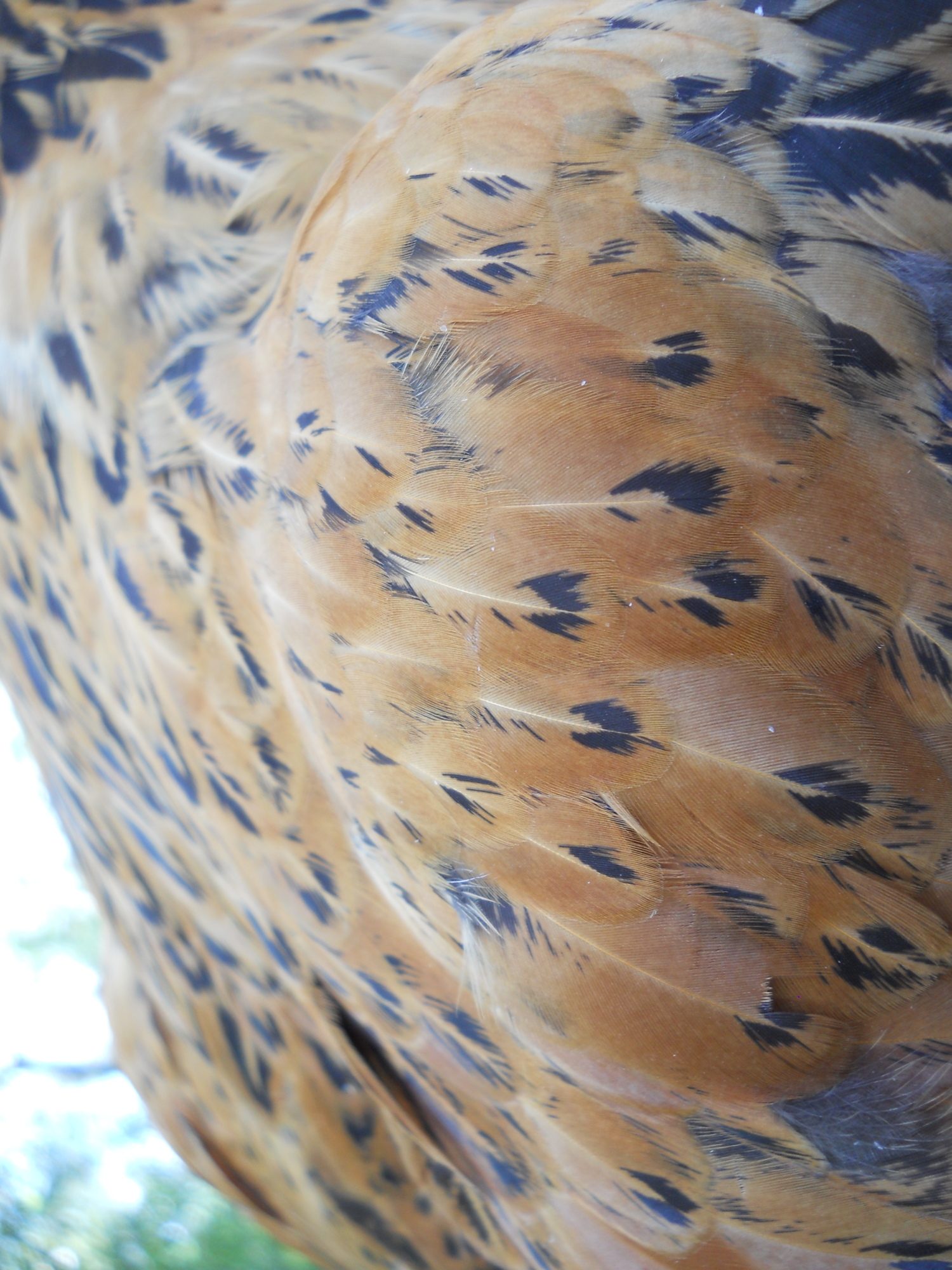 See the new color I am working on, accoring to the chicken calculator this color for the roos is a yellow transverse penciling and the hens are called golden transverse penciling, of course with both having the columbian restrictions of lacing at the neck, tail, and wing tips.