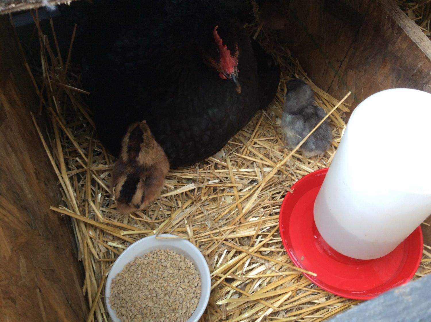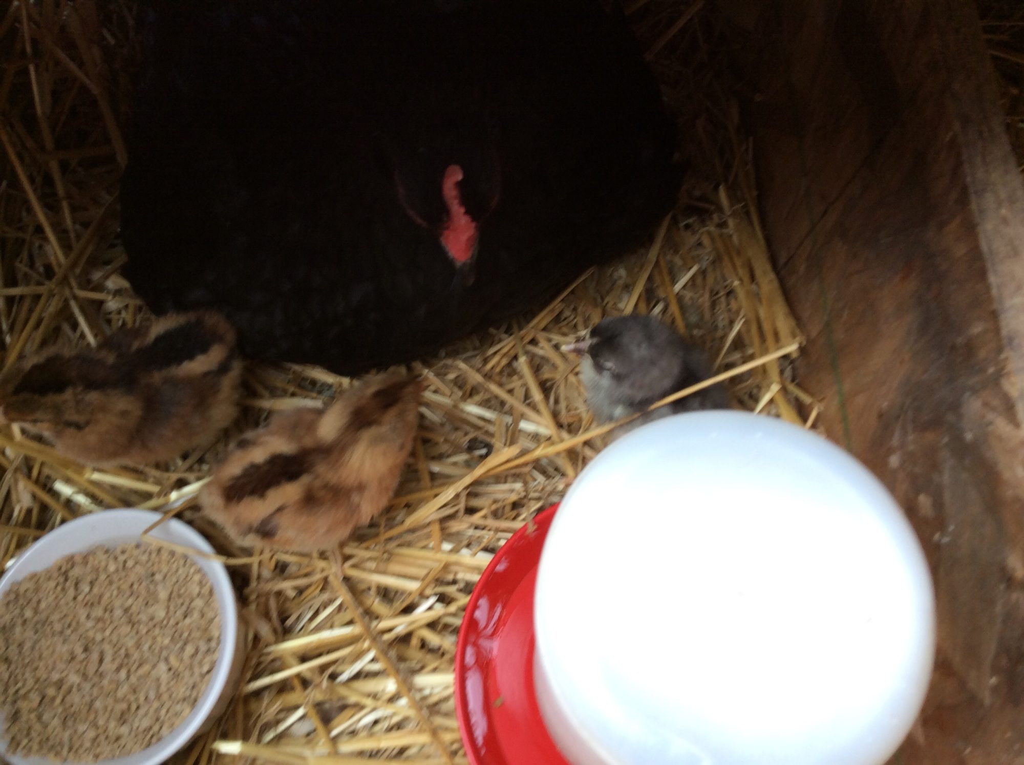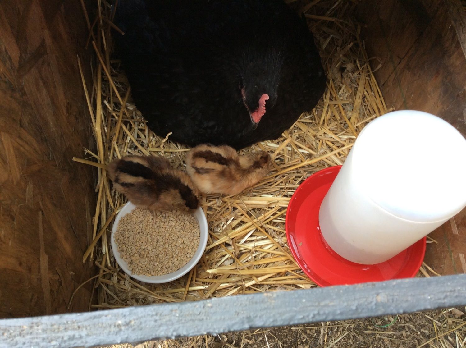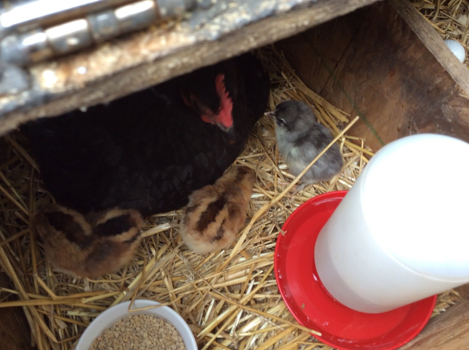 Okay everybody, cuteness overload! There are four chicks in total. I'm hoping @dheltzel can help figure out what we have. Sorry for the poor photos, we know broody mamas are not up for photo shoots. :lol: