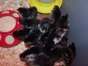 I know it's hard to see and count them, but we wound up with 16 out of the 24 eggs. We still have WAY more than we anticipated (or wanted, really) so now we have to decide if we're going to keep them all or not. It's hard to imagine letting them go, though. They are totally sweet. I have no idea if we'll have the will to cull any roos later on.
