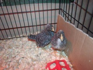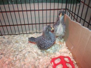 Australorpalooza! I know it's hard to see and count them, but we wound up with 16 out of the 24 eggs. We still have WAY more than we anticipated (or wanted, really) so now we have to decide if we're going to keep them all or not. It's hard to imagine letting them go, though. They are totally sweet. I have no idea if we'll have the will to cull any roos later on. Two pics of our Barreds. Any idea of their sexes from the pics? We thought we had one pullet and one cockerel, but now we aren't so sure. Thanks!