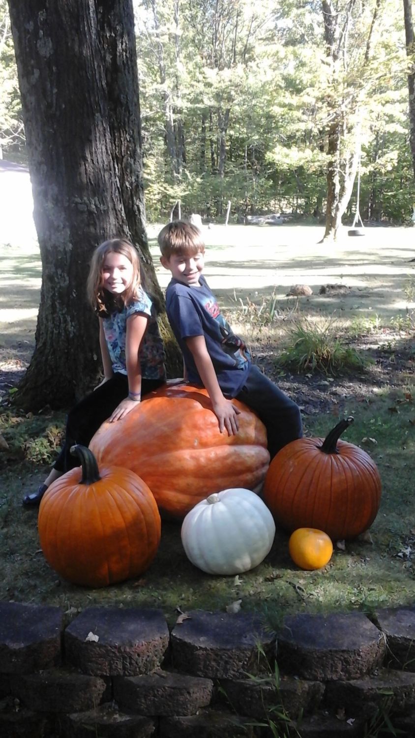 Speaking of pumpkins, I'm saving some seeds from THIS monster! We saw it at the Amish market listed for $20 so we couldn't resist bringing it home. The kids were ecstatic when they got home from school and saw it lol. I can only imagine the big shady vine it could produce for the girls to hide under lol