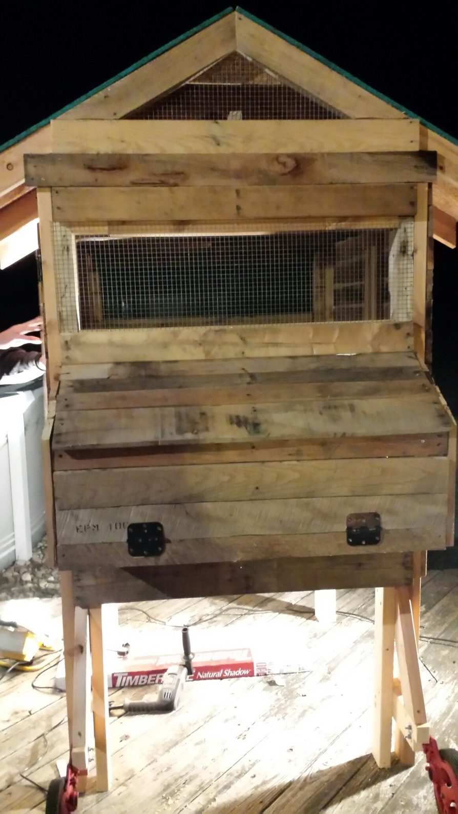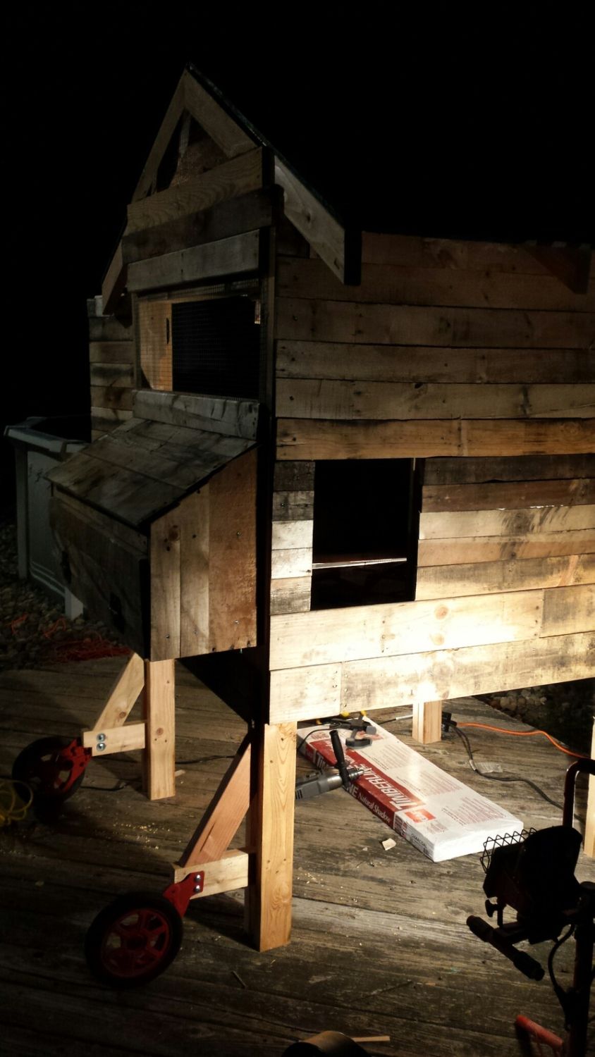 I'm so mad at myself! Working on my sister's coop today, I had notes on my plan to run the peak of the roof the short way instead of the long way so that the overhang would protect the screened windows from weather. I put the ting on the long way anyway! So now there is no overhang over the windows. And I didn't realize why things weren't working out they way they should until we were done for the night and was just too late to do anything about it.