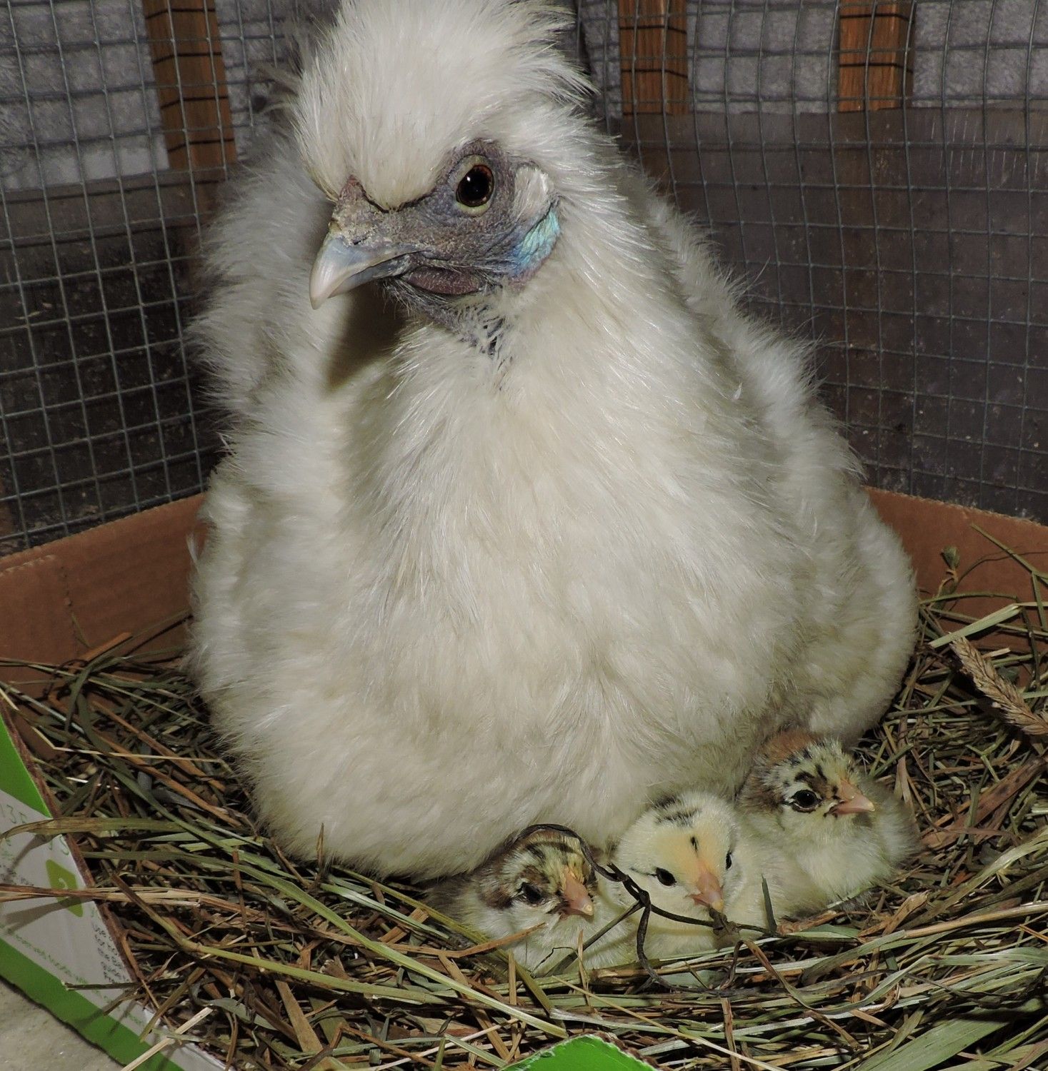 Lacey has 3 out so far, pretty good since they were actually due tomorrow. Only got to see one because she is keeping them pretty tight under her...these are all barnyard mixes.