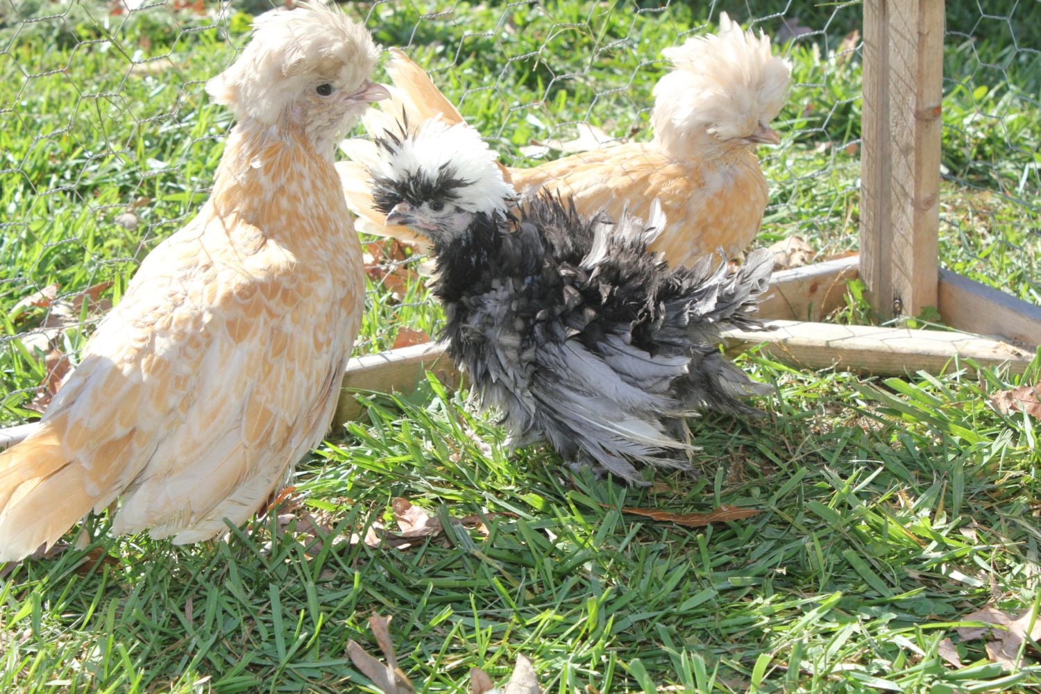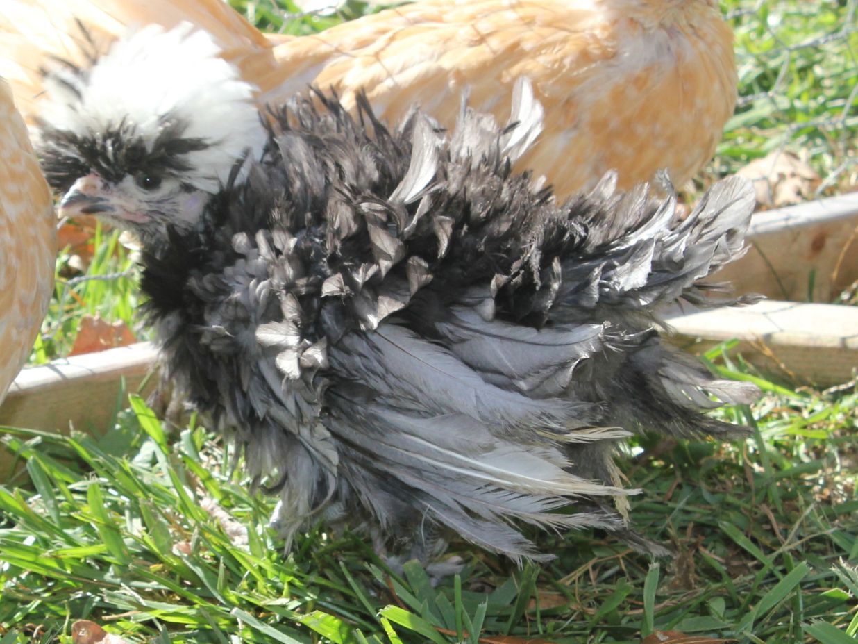 I also have these two BL (I am thinking 2 pullets) from the same lines. Little one is same age as frizzle, older one is almost 4 mo old. All are bantams.