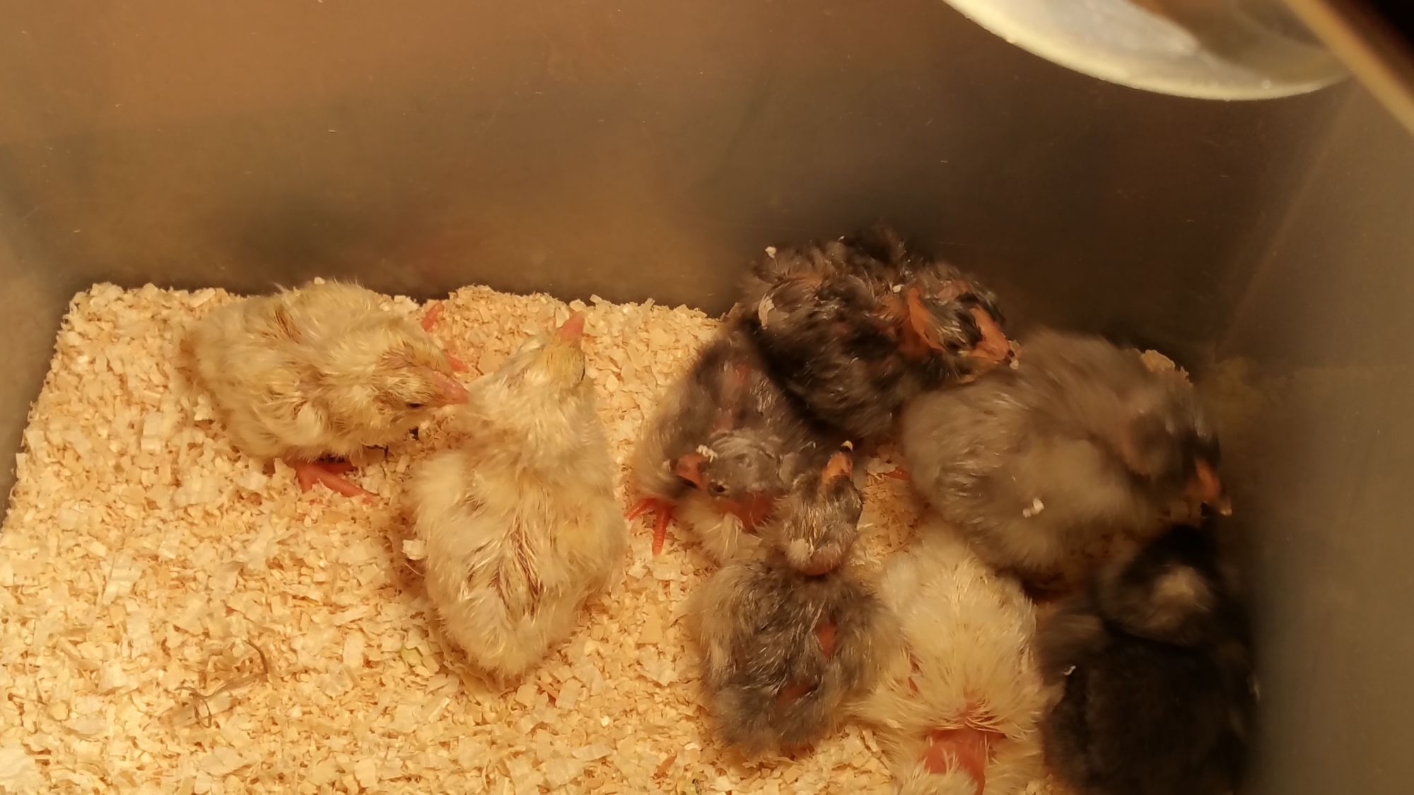 The ducklings got to try lettuce today. One of them did not seem to care for it, but did play with a piece of the hard white stuff. After getting their fill, they put themselves to bed.![]()