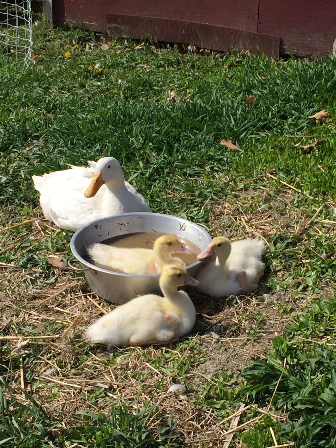 What variety are they? How would you say they are different? And what does duck taste like? I've never had it before.The ducklings got to try lettuce today. One of them did not seem to care for it, but did play with a piece of the hard white stuff. After getting their fill, they put themselves to bed.![]()