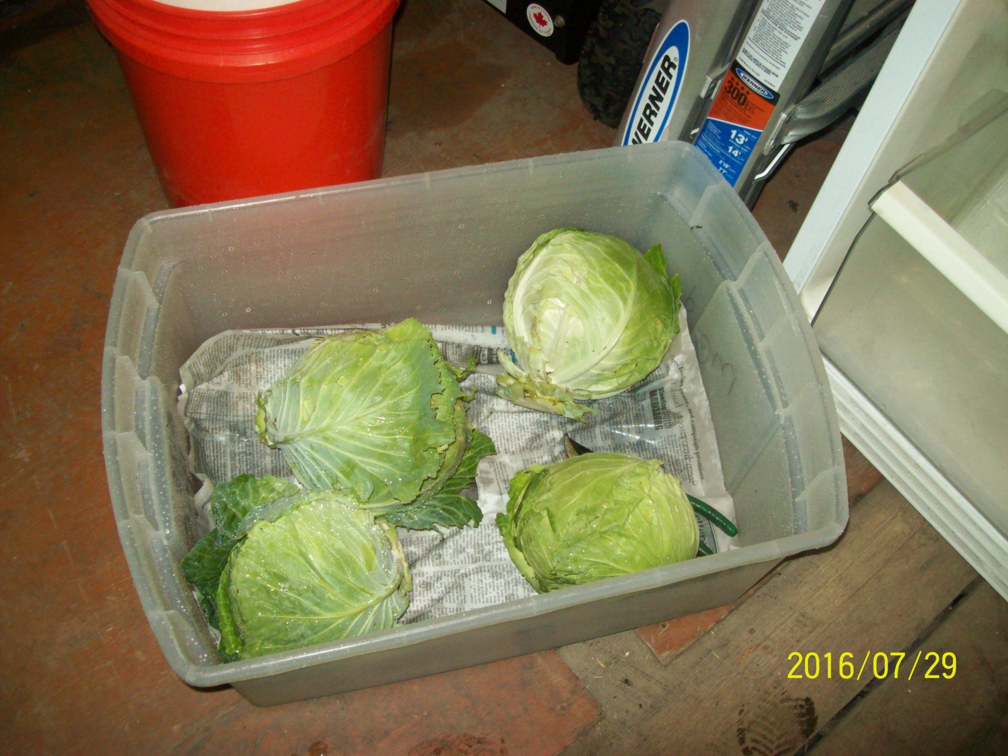 We went out to harvest the cabbage and I guess that's what we needed to do to get some rain around here...got soaked , but the cabbage looked great. there a couple left in the bed that need a little more time. had trouble getting them into the crisper, had to use the door space too!..hahaha