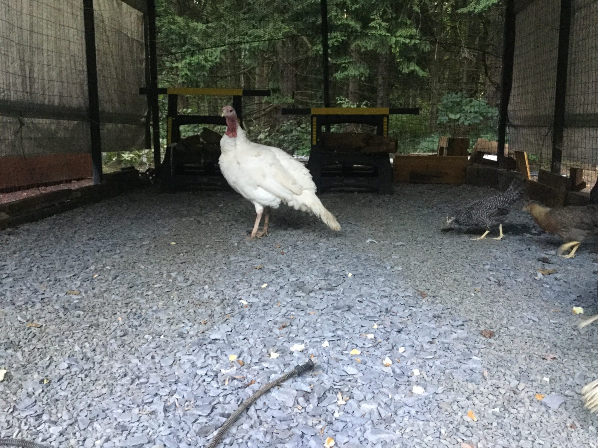 The turkeys look dirty because they were sliding around in their poo in the dog crate on the way home. :sick. I will try to hose them off over the next couple days when it gets hot again.