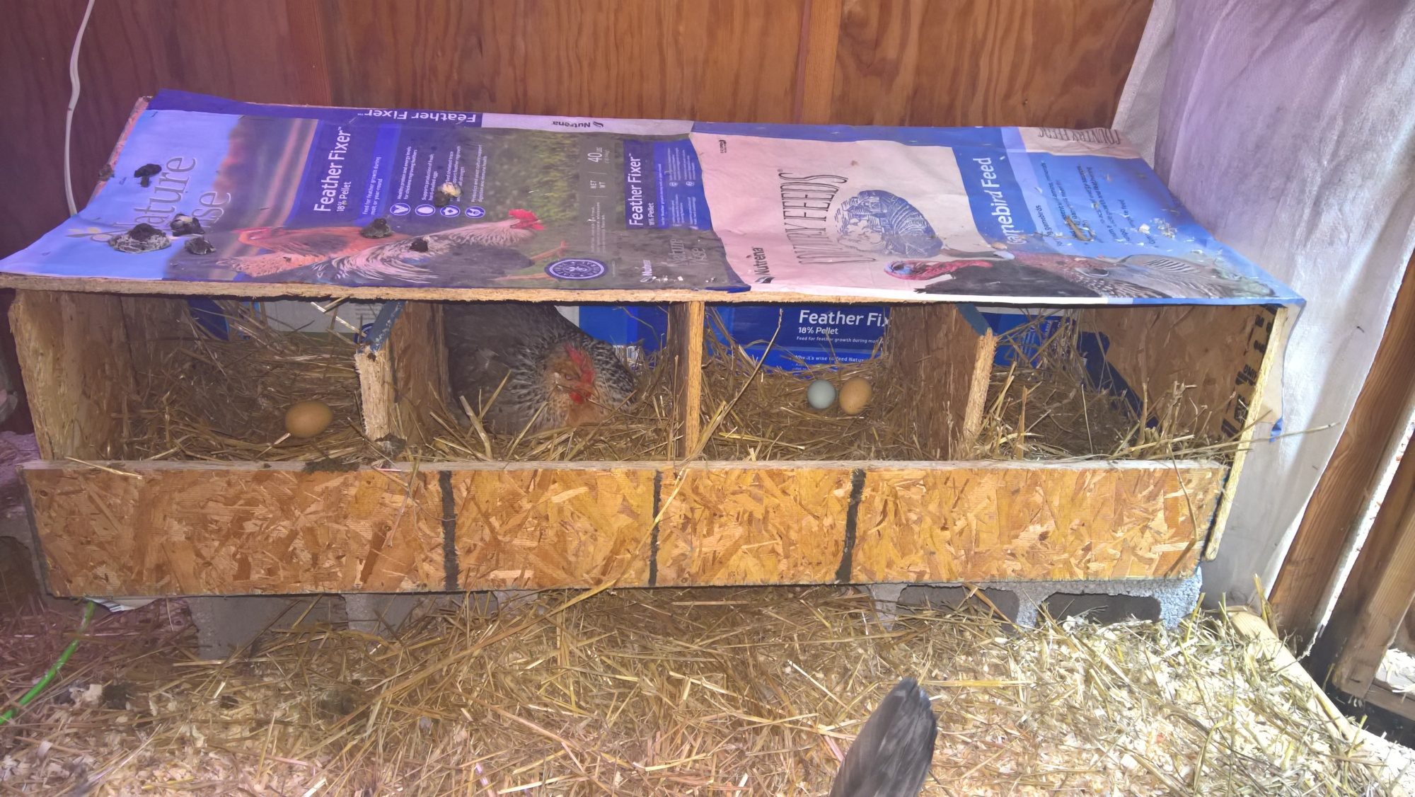 At least the broody stays put. There are 7 nest boxes now...