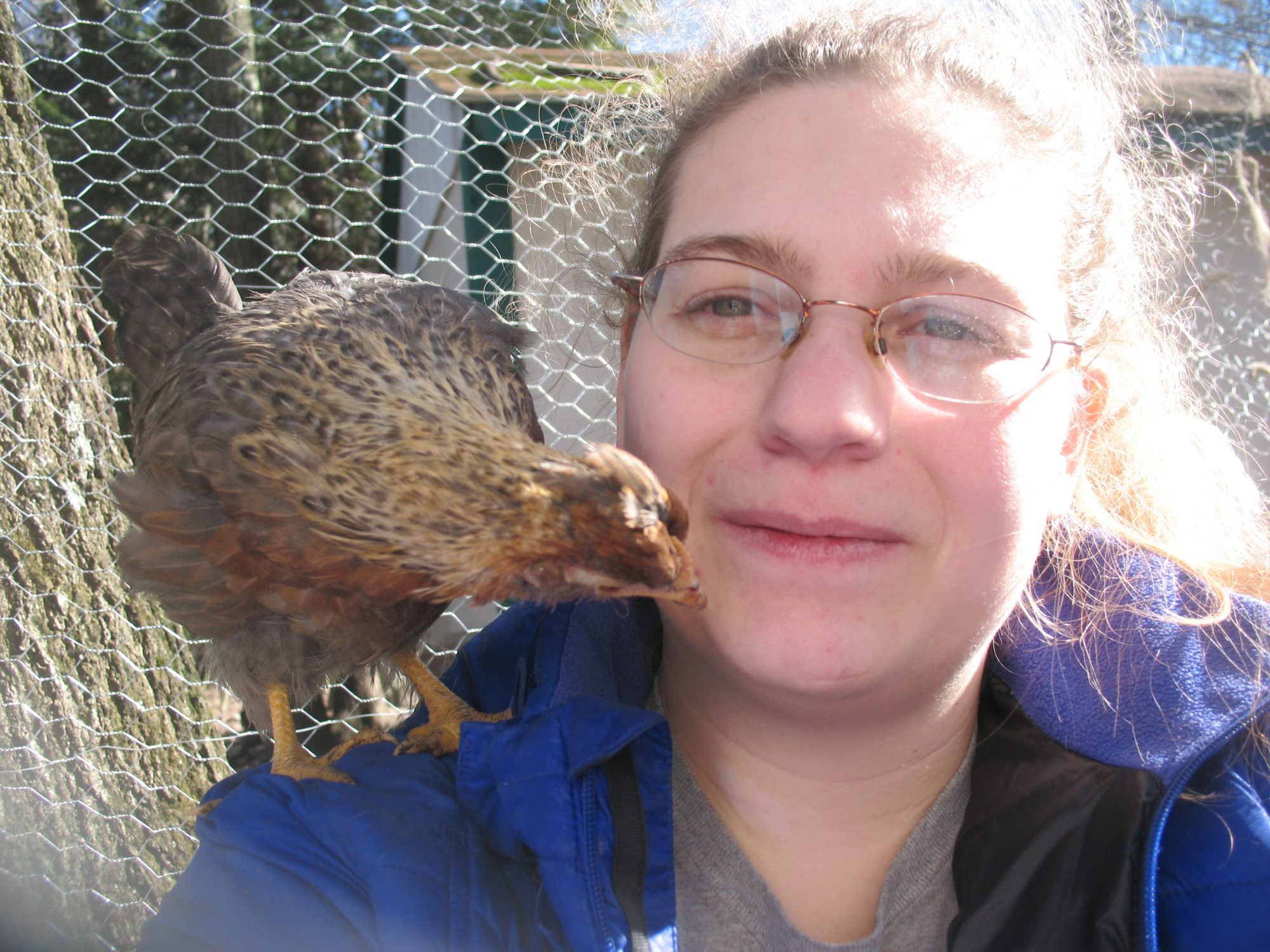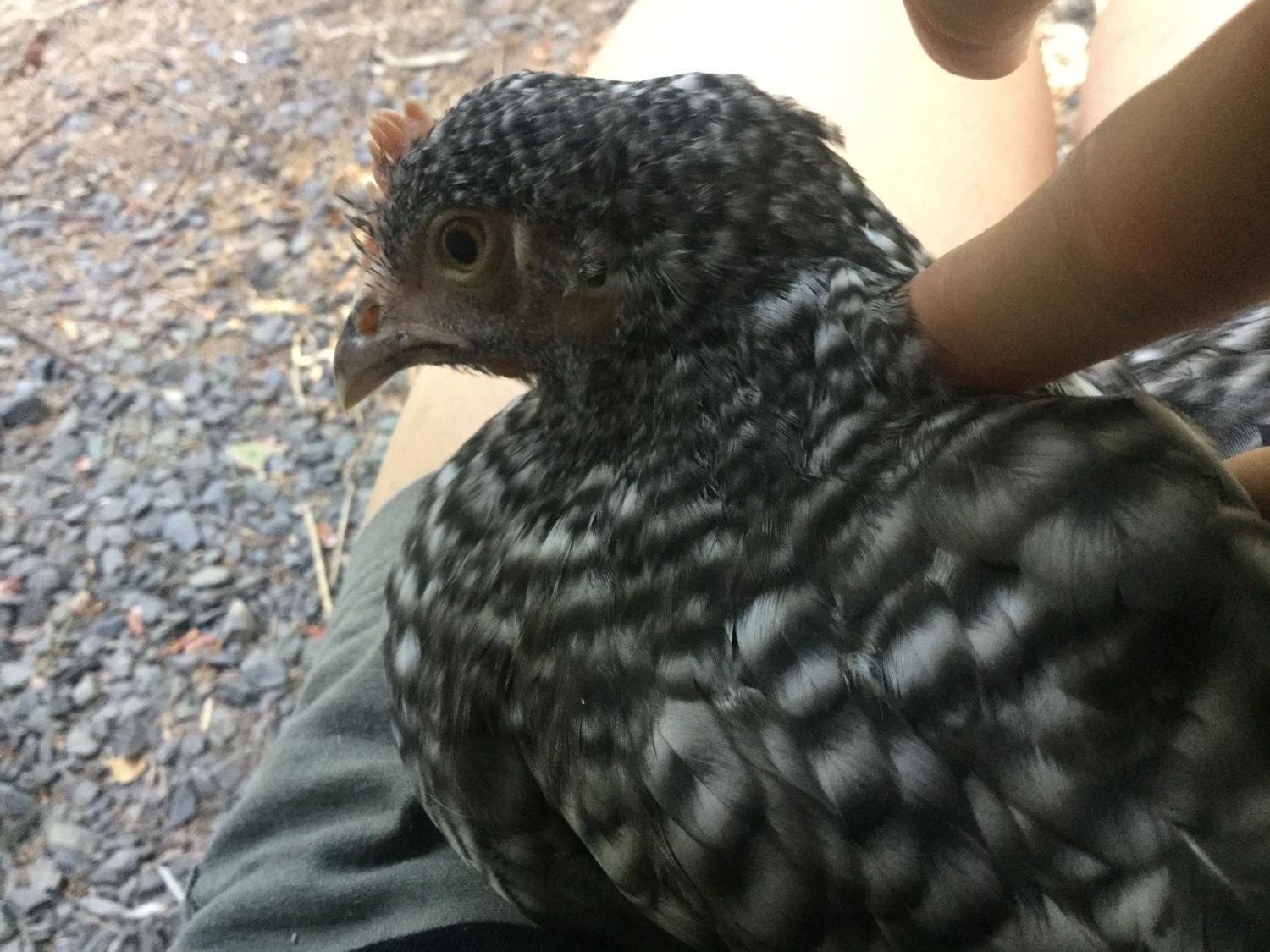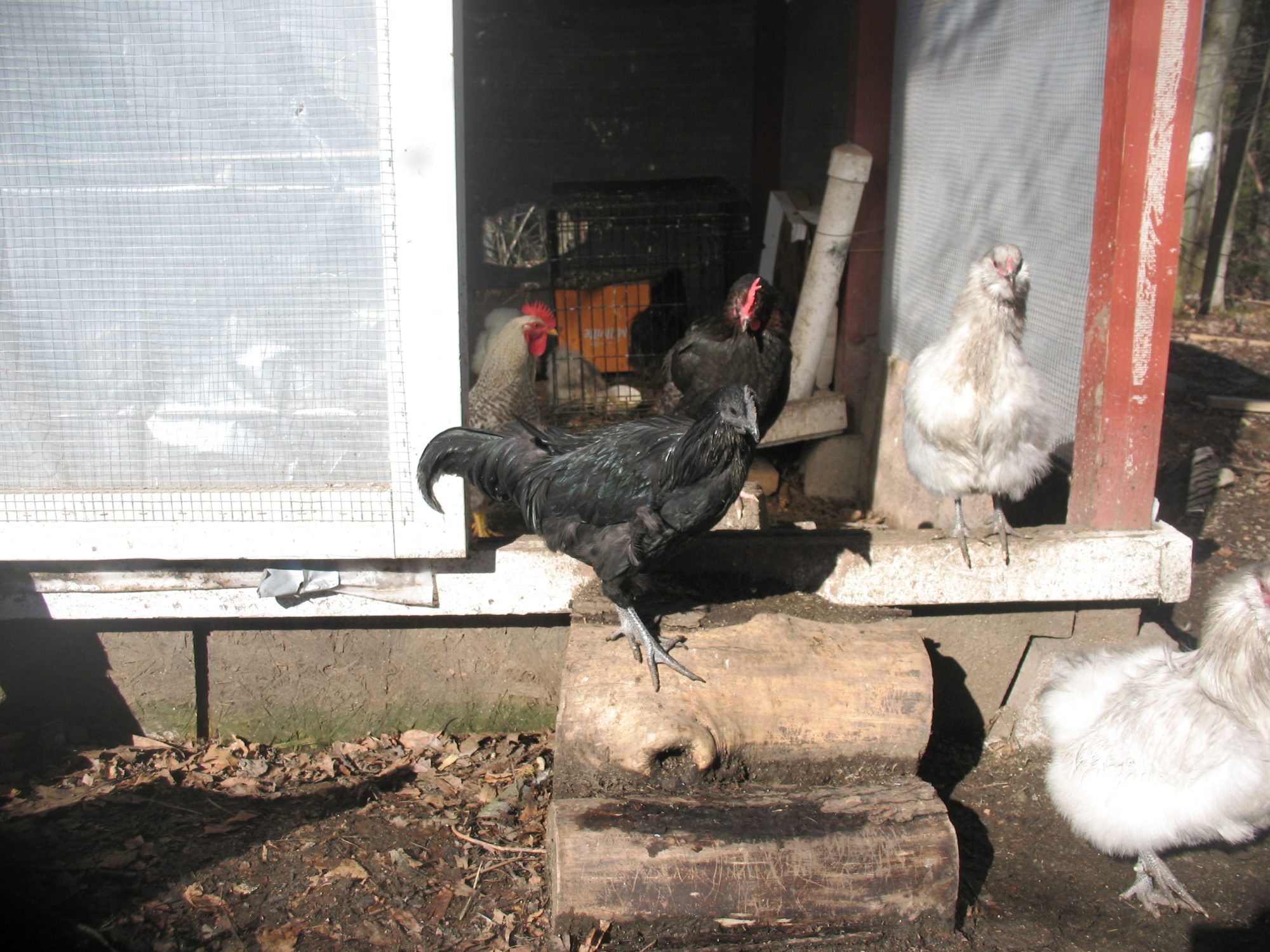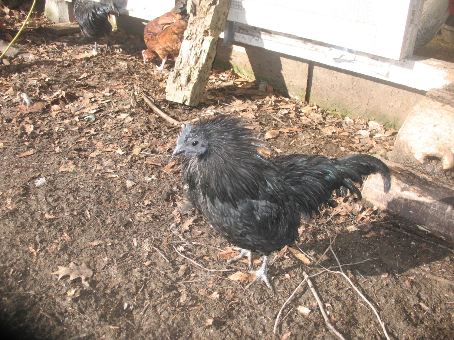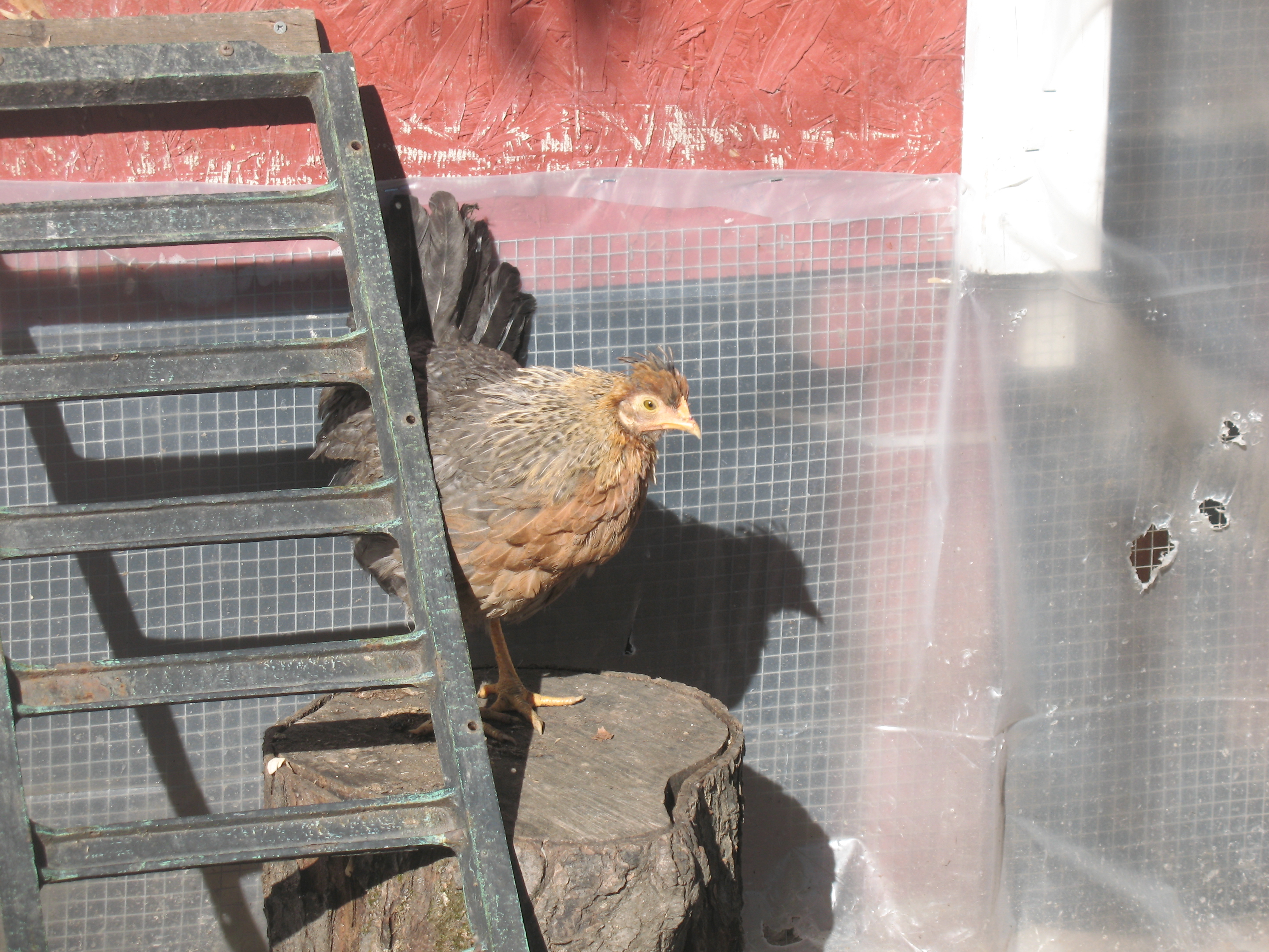 Everyone was out enjoying the sun today Ana's baby from her last hatch, last fall (CCL x RIR). I just now noticed that I forgot to take a pic of her and her new baby lol Onyx, my sweet AC cockerel This little CCL pullet is quite taken with me. She was following me everywhere before she flew up to hang out on my shoulder. She wouldn't get down till I kicked her off lol. And the brooder babies