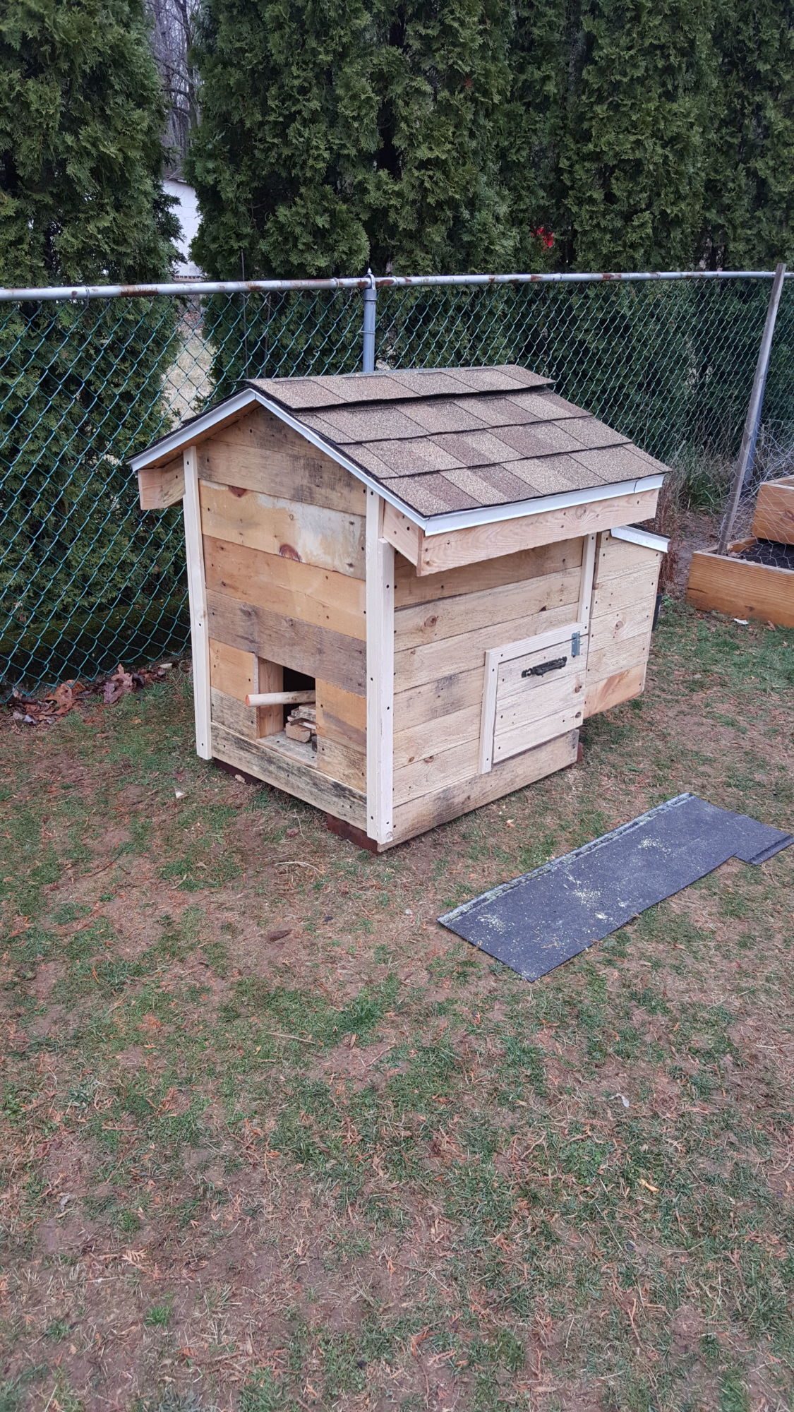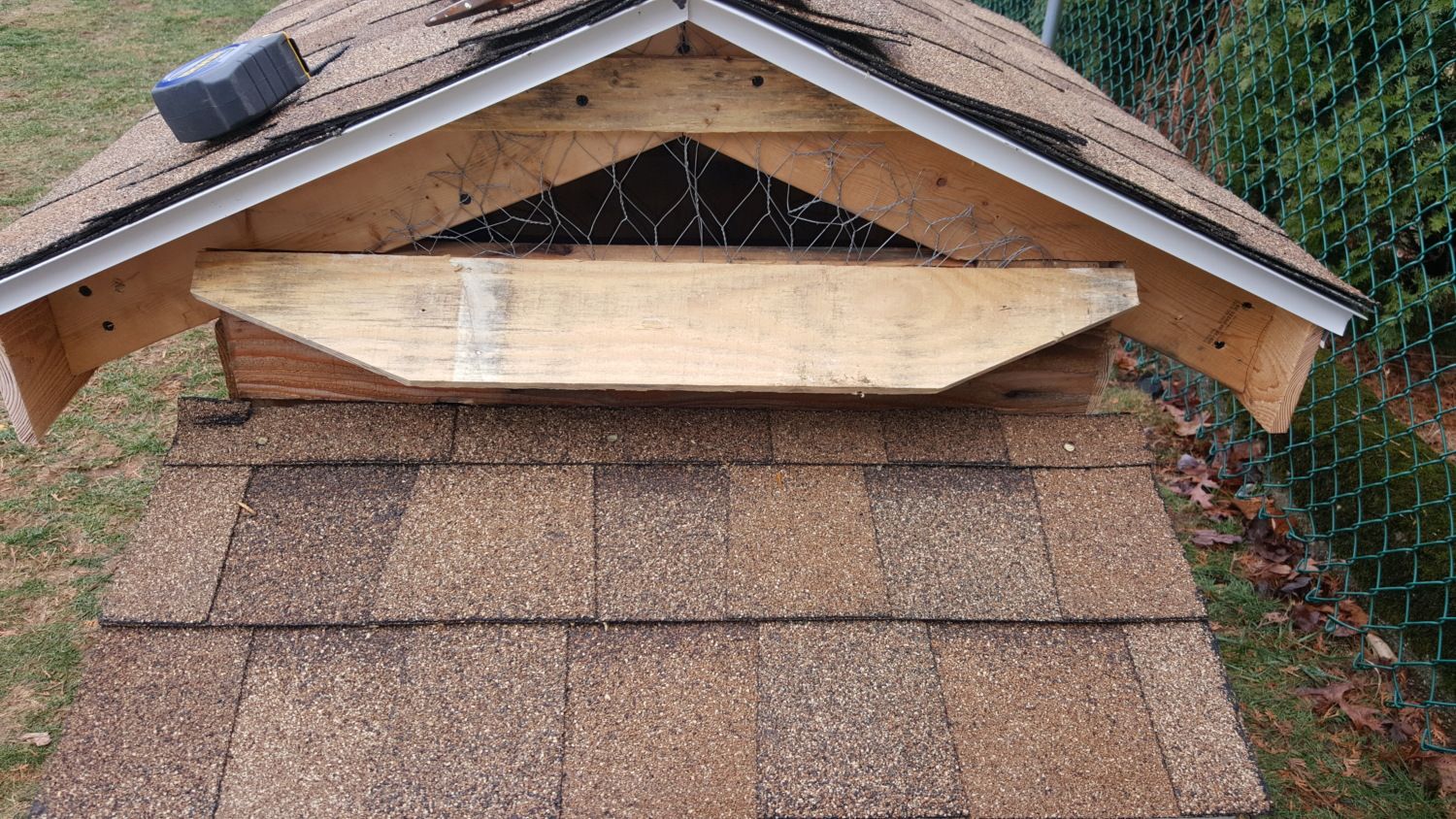 Good morning all. What a rain we got yesterday. I was lucky to get a couple breaks in the rain to get the main roof on minus ridge vent and caps, trim work done, and a vent window put on (and various locks). Today will be focused on the run and a door, chickens get picked up [hopefully] between 1230 and 1430.