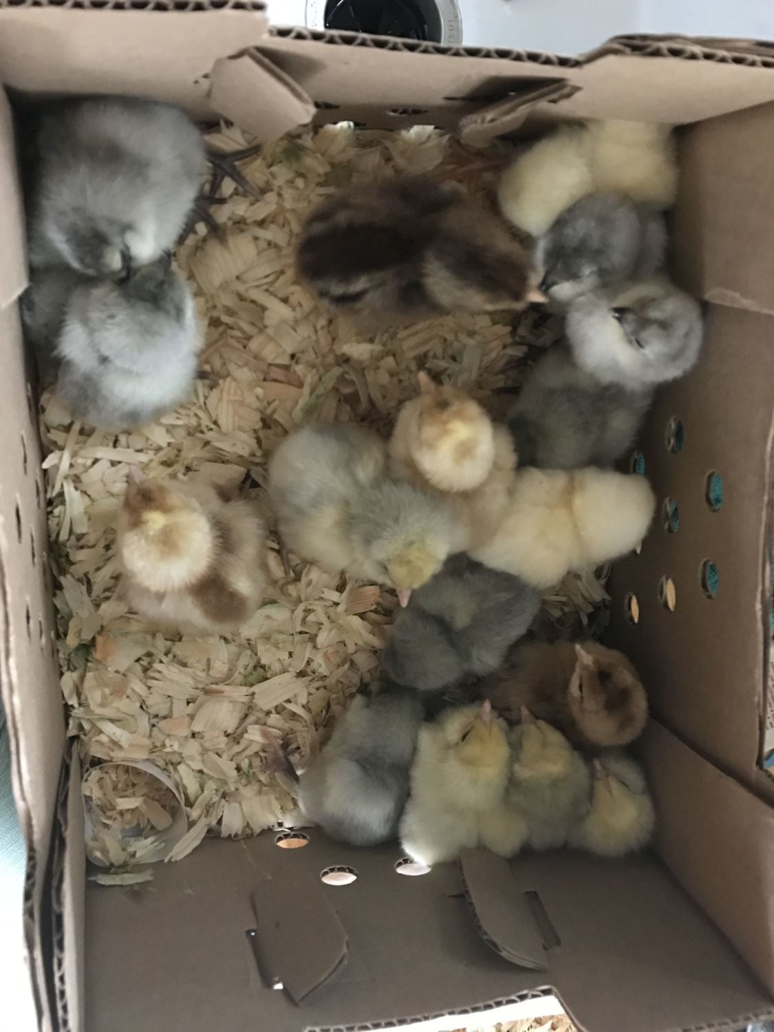 I got my Ameraucanas from Once in a Blue Moon Farmstead yesterday! They are beautiful! But now I have 58 chicks!!! Holy crap! I lost an EE who was about 8 weeks old by drowning in the duck pool and 2 Sebright chicks this week. It's been a crazy emotional highs and lows. Trying to move chicks around and get everyone settled.