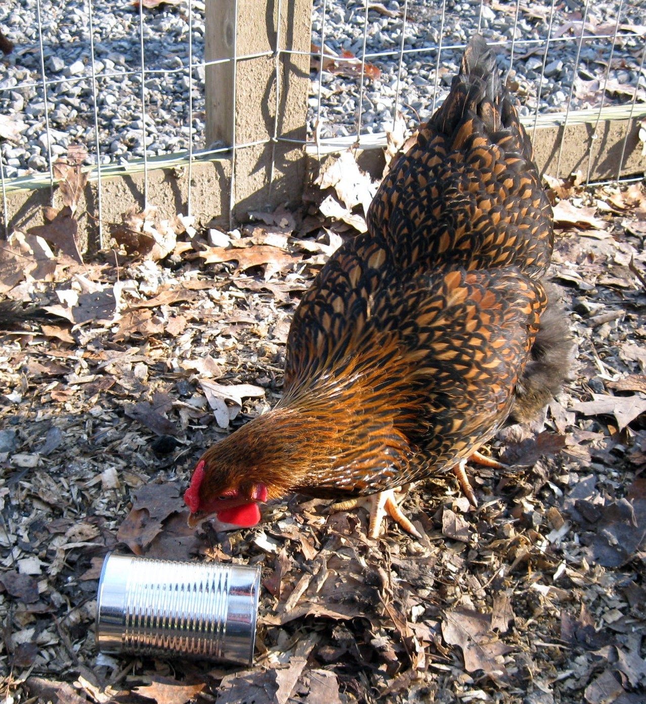 Below is Harley our GLW and first to lay! here she is found with a corn can,