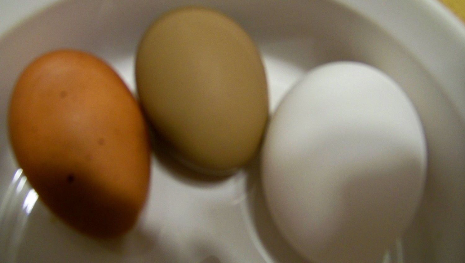 YIPPEE! They are starting! FBCM and olive eggers. obviously the FBCM needs some work on her sprayer,but that khaki is nice! taken without a flash next to a storebought white egg.