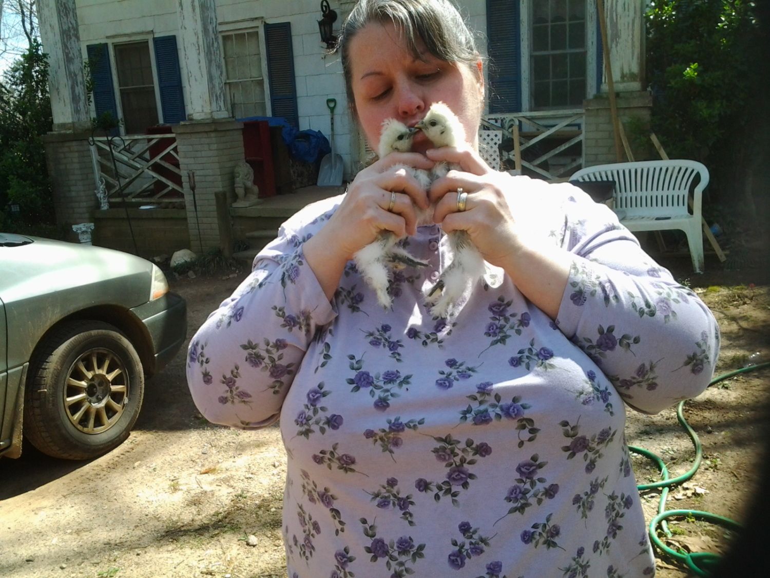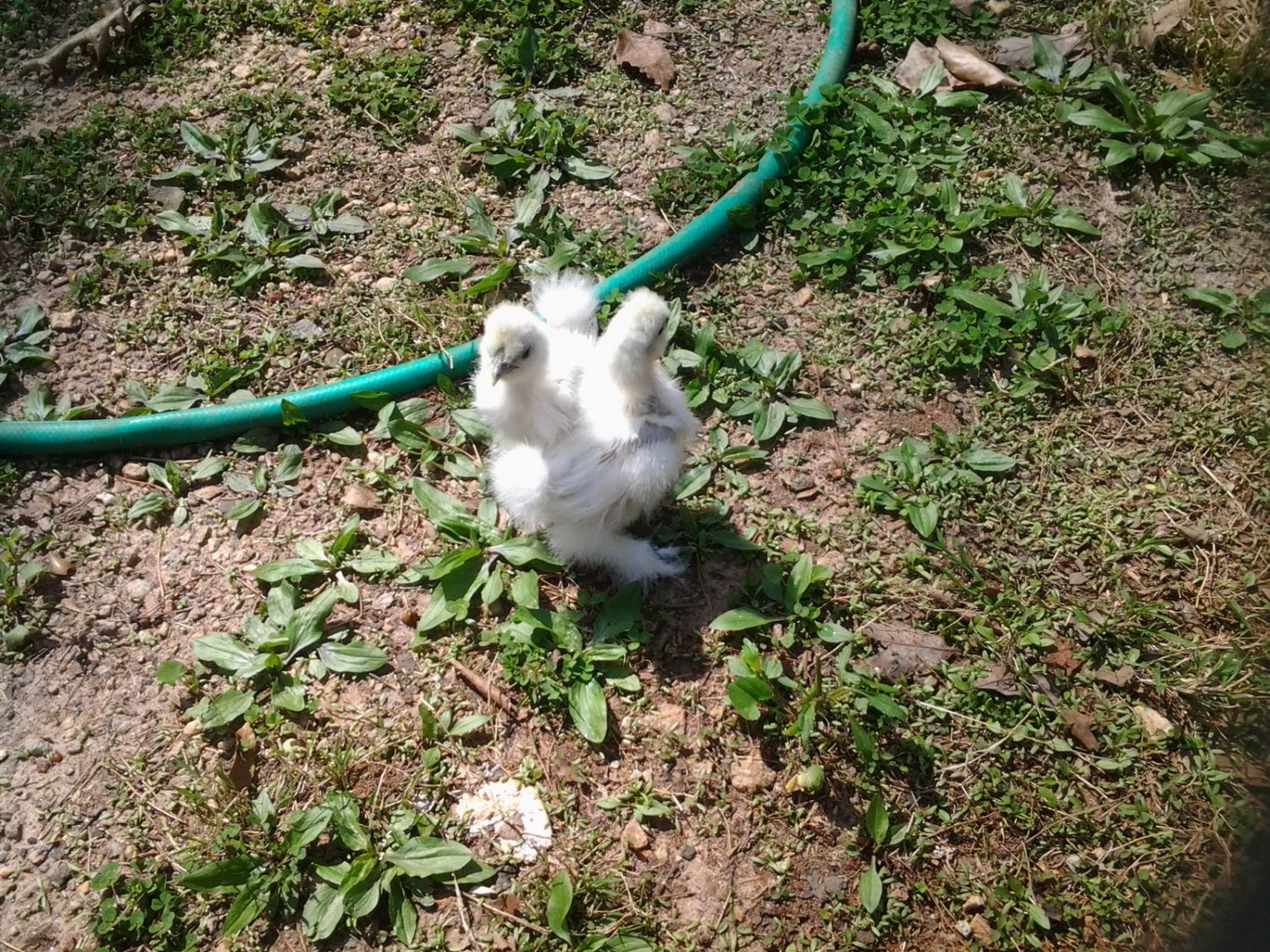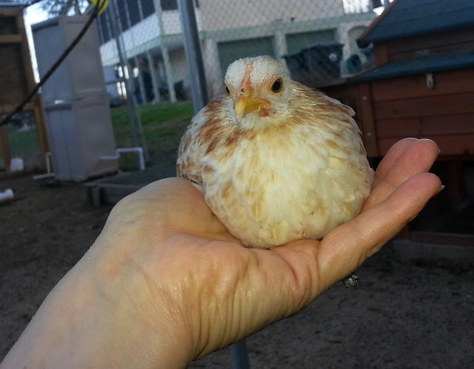 She got too close to our gander's wife and he grabbed her neck and ripped a very, very large chunk out of her neck, all the way around. There is a 1 inch piece of skin that stops the gash from being a full circle around her neck. It would have severed her crop.. we were very lucky.Aww, she is so cute! What happened?