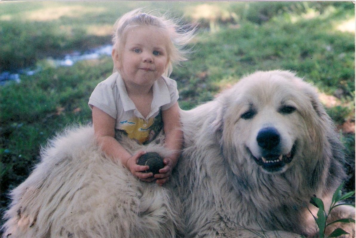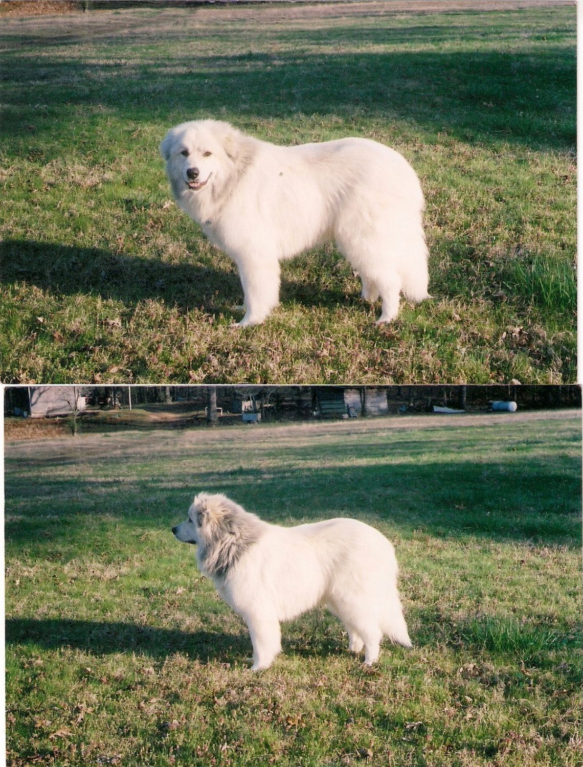 Heres pics of my wonderful Pyrennes! He's been gone now for about two years! These were taken where I used to live! My grand daughter loved him. She'd ride on his back while I held her arm!LOVE those big dogs. Ovcharkas, Macedonians, Pyrennes, etc. Wish my yard wasn't so small I'd get a watchdog but need the space for foraging hens. We opted for chicken poop instead of dog poop. After having 3 Rottweilers over the years I can't manage the huge pups anymore!