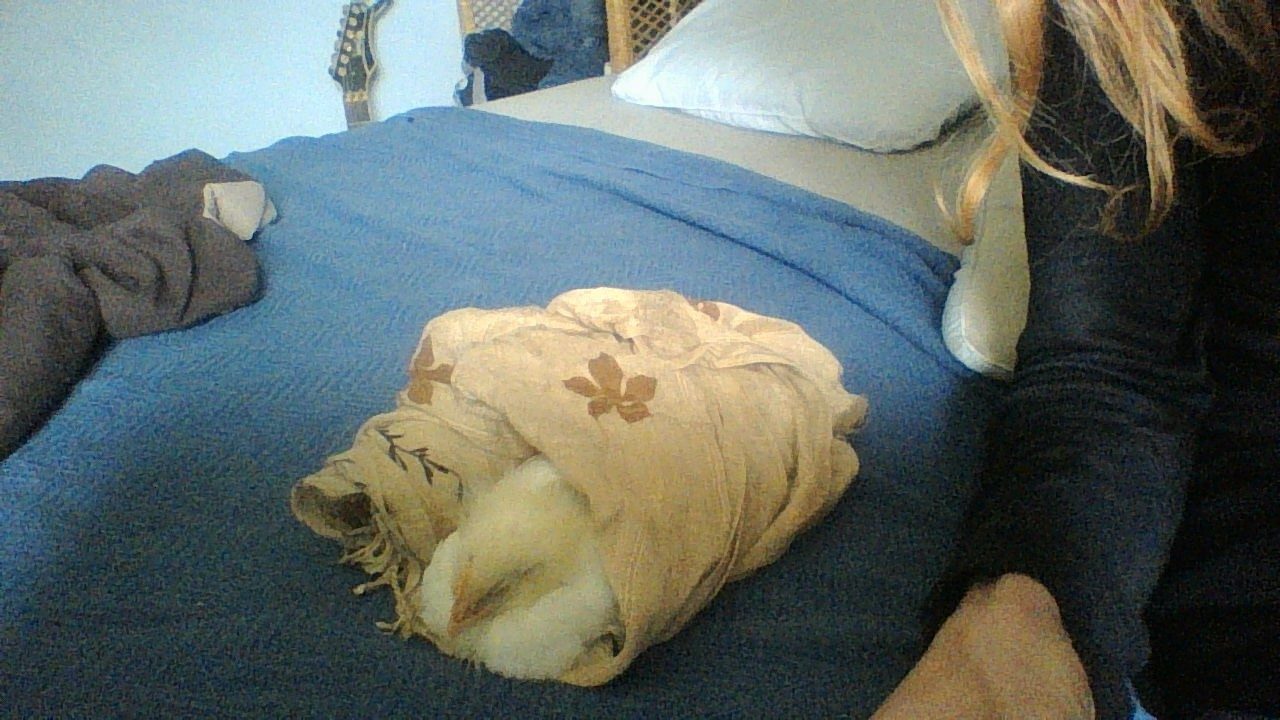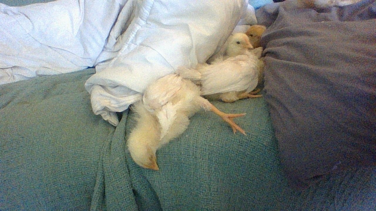 Havent been on here in a few years but wanted to check in and say hi! We got 4 chix given to us with no mama so we have raised them so far with no heating lamps or heating devices other than our own cuddles. They are so sweet.