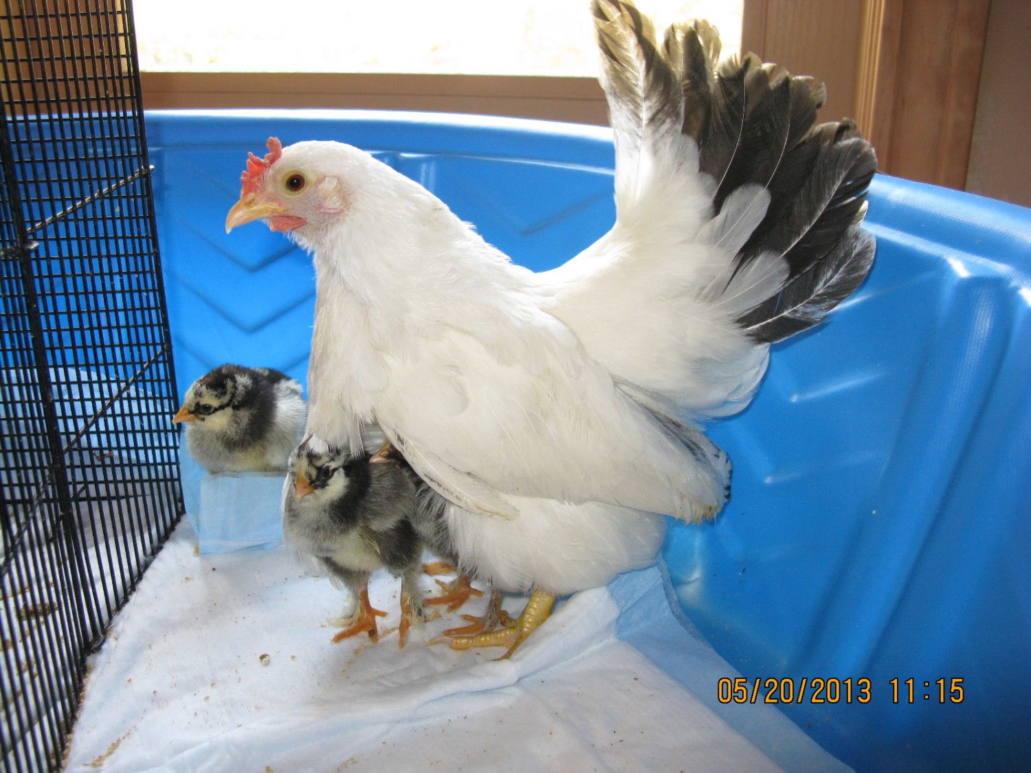Dottie has been sitting on six eggs. Today is Day 23 and hatching.