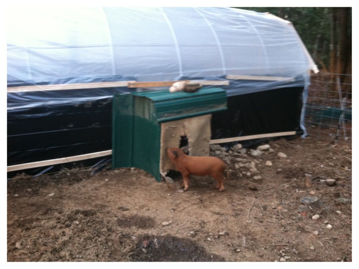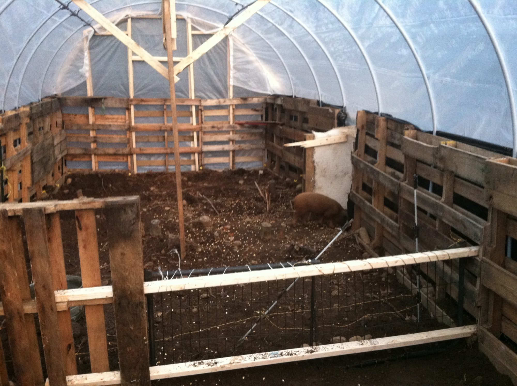 I am going to convert my 2 hoop coops my SIL built into one large one similar to yours. I just need to figure out more about the huddle box & nesting box areas & how to combine the 2 coops. We've used them for the summer, since we live in North Dakota. I've been keeping the chickens in my husbands garage (taking up half of it) & he wants them out & I can't blame him. We have Chantecler chickens (a Canadian breed so they can handle the cold). DH made me a very large huddle box perch area that was insulated, so I have to probably cut it down in size a bit for it to fit. I love the snow photo, it helped me talk DH into using the hoop coops, so he can have his garage back. There is so much for us to figure out to make work for our area, but I am very inspired after seeing your permanent hoop coop.