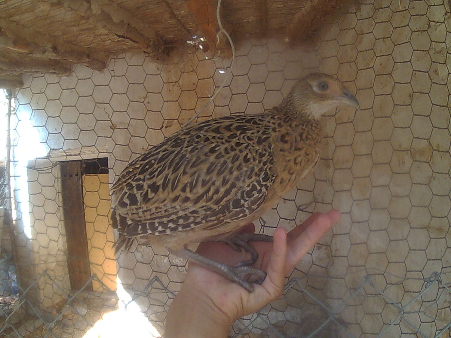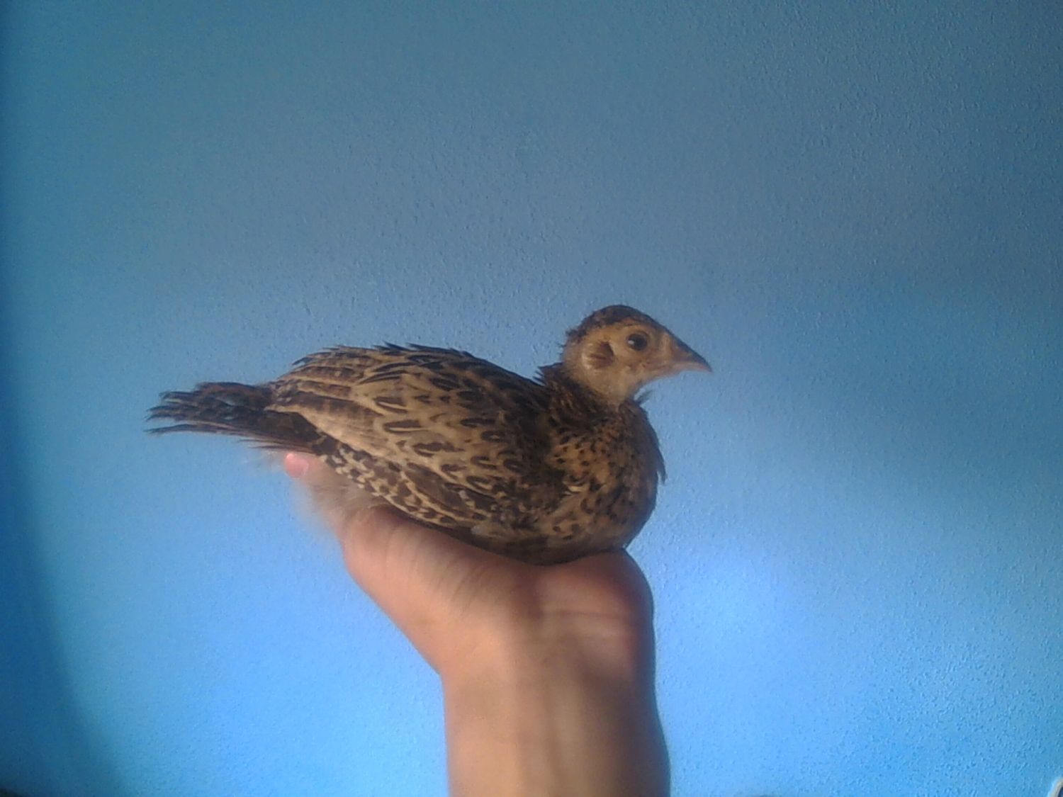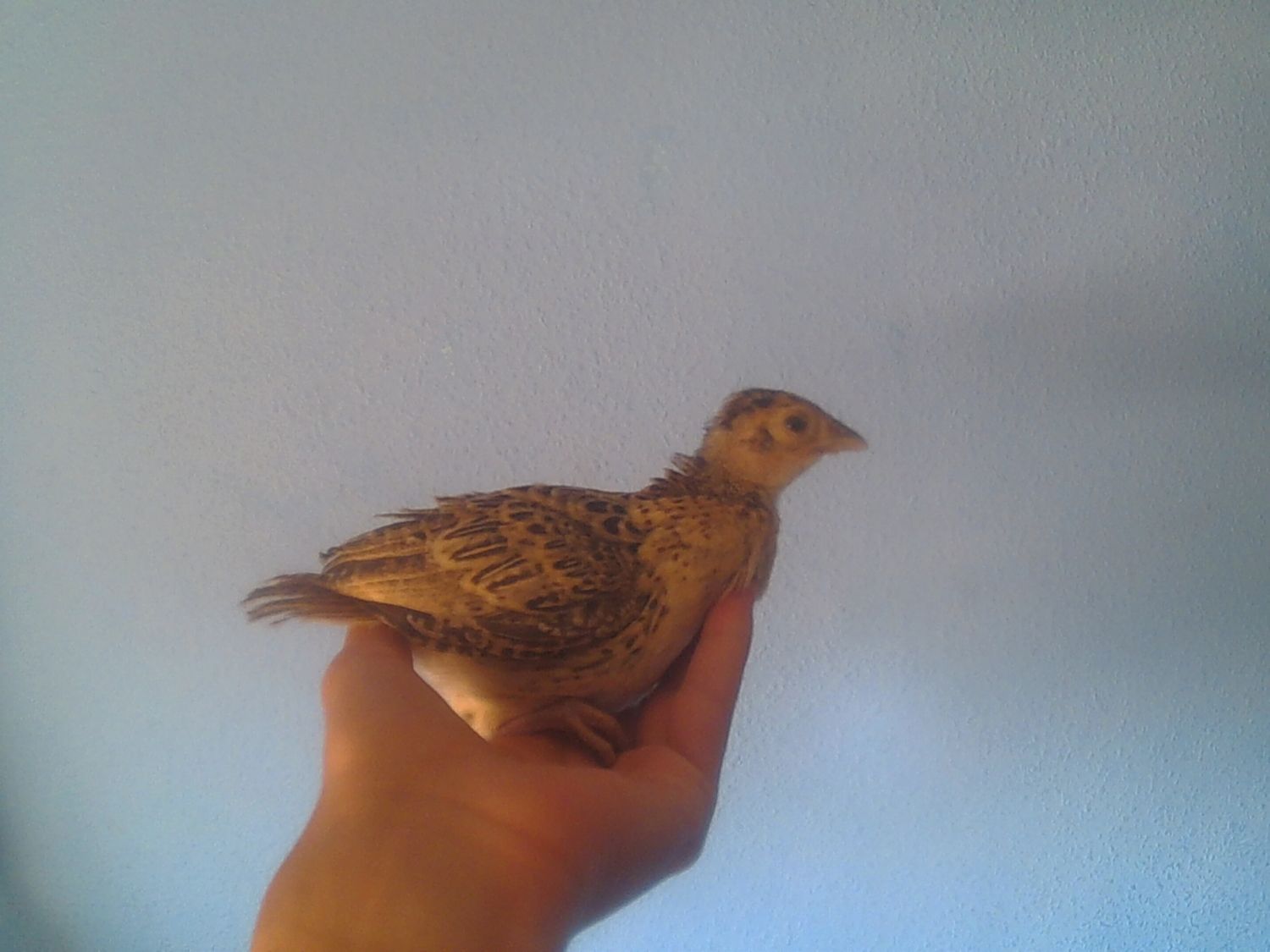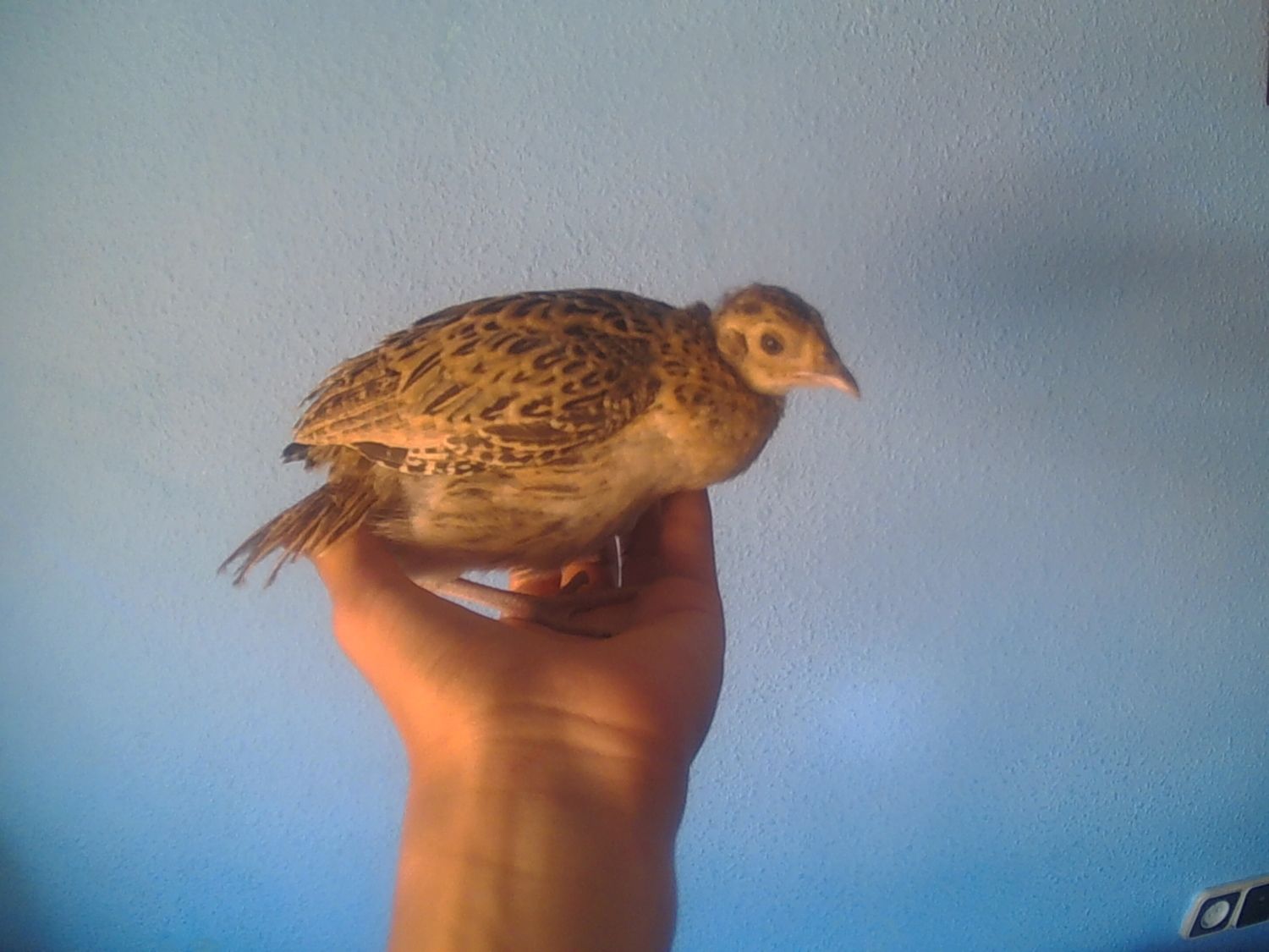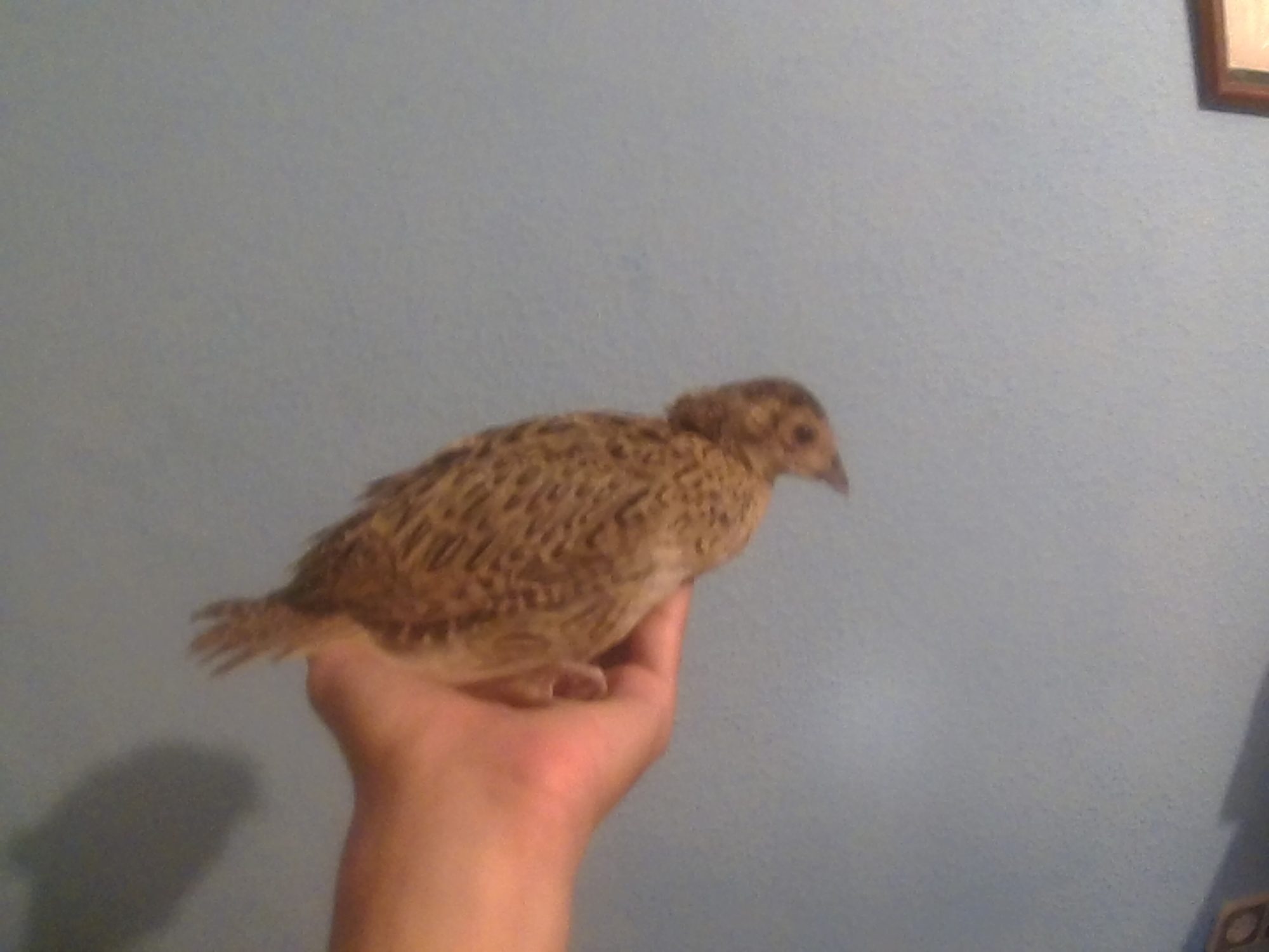 All the afternoon calling my little chick, of the two pheasants I have, he is the more more quiet. Starting the night, my sister came home with the chick, She told me: You haven't closed the door and the chicks start loocking for you, And the pheasant went to the balcony and falled to the street, I went to catch him and because I don't have the keys I went to the house of a friend.