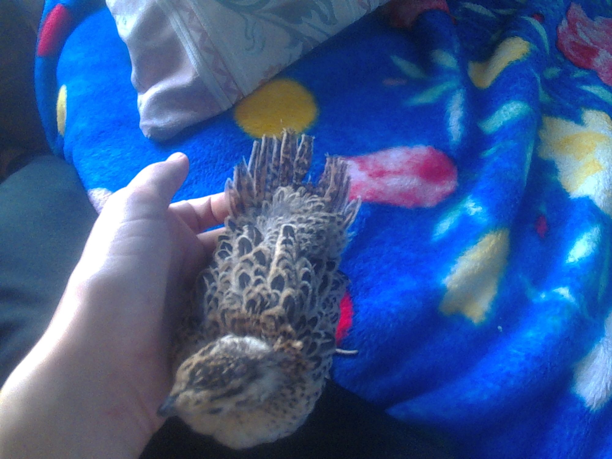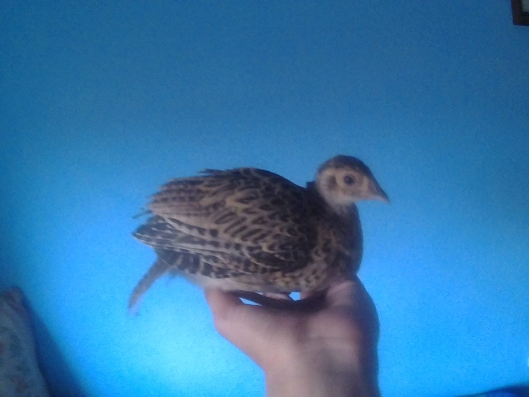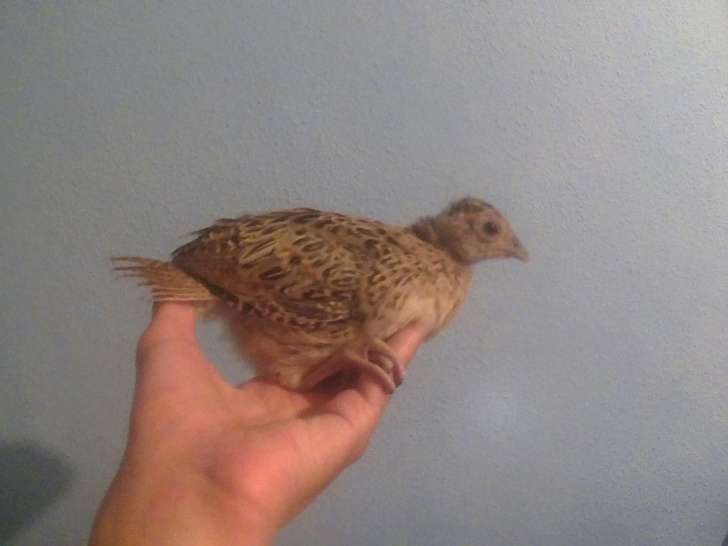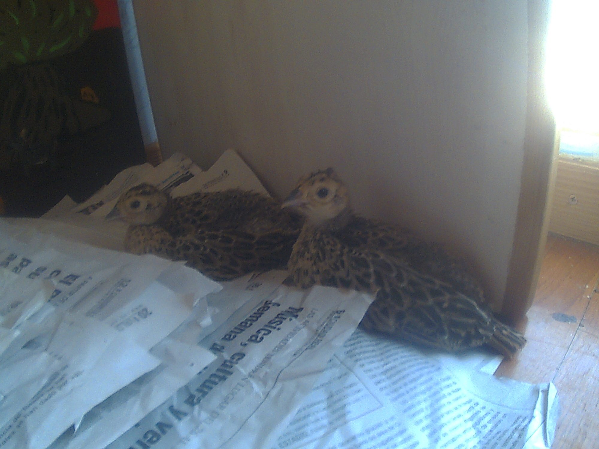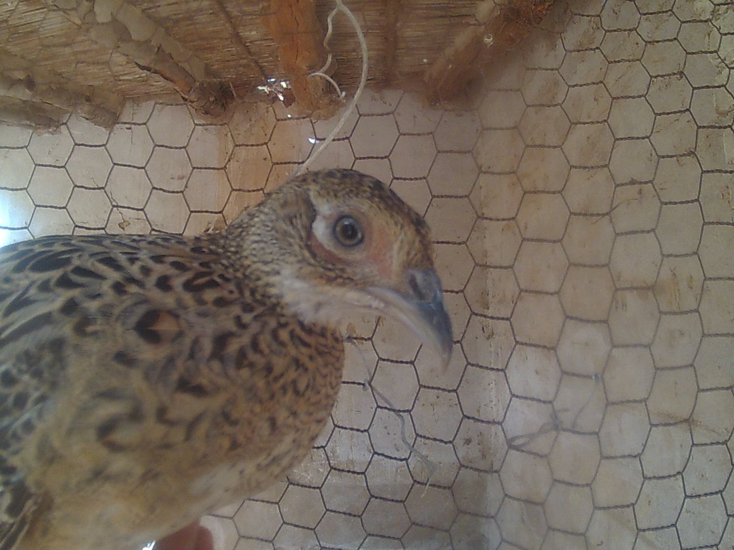 All the afternoon calling my little chick, of the two pheasants I have, he is the more more quiet. Starting the night, my sister came home with the chick, She told me: You haven't closed the door and the chicks start loocking for you, And the pheasant went to the balcony and falled to the street, I went to catch him and because I don't have the keys I went to the house of a friend.