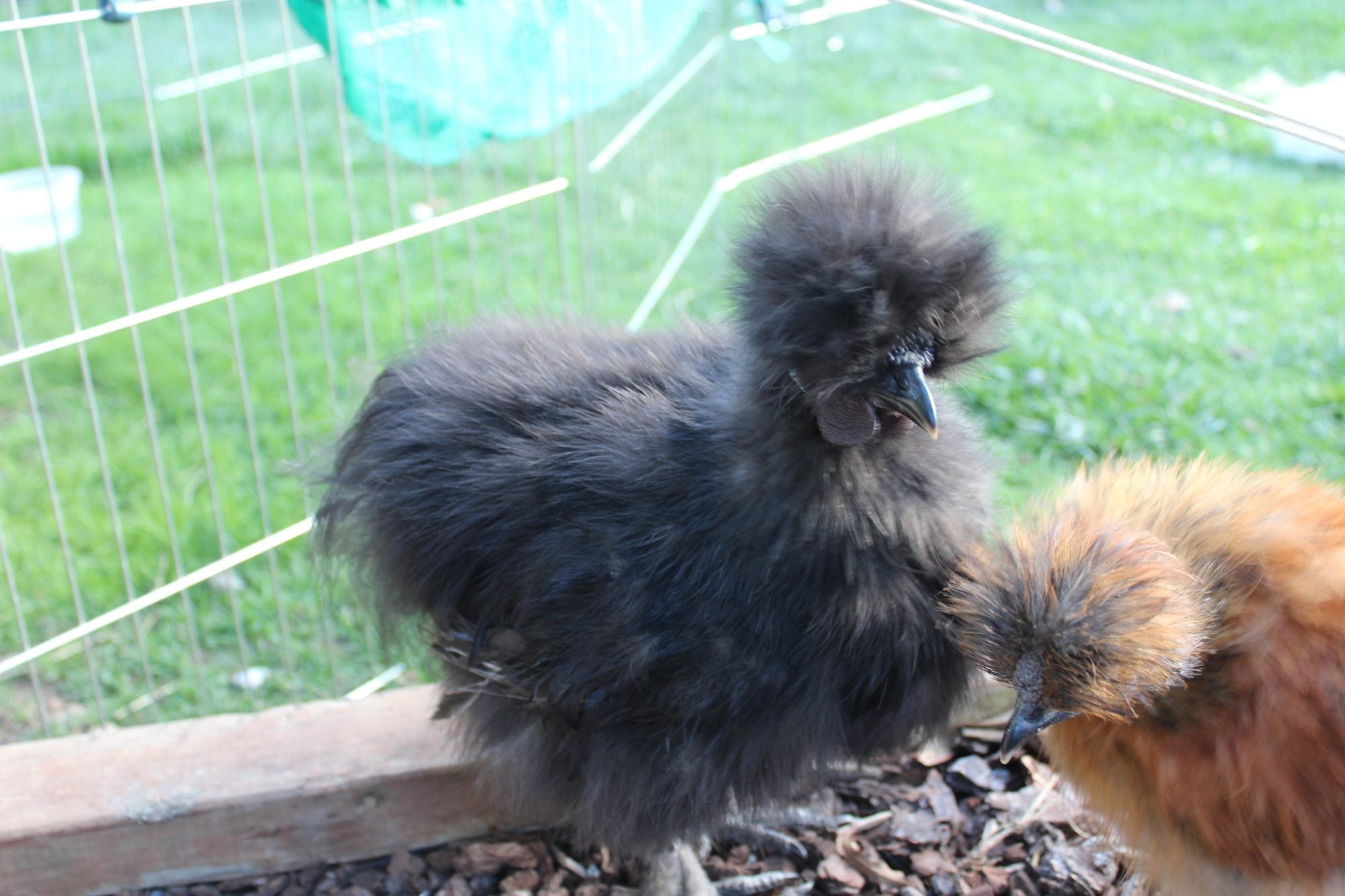 Rudy, our 2 year old RIR rooster. Bob, our 9 month old Silkie rooster. I do have higher resolution photos of these that I can give to you.