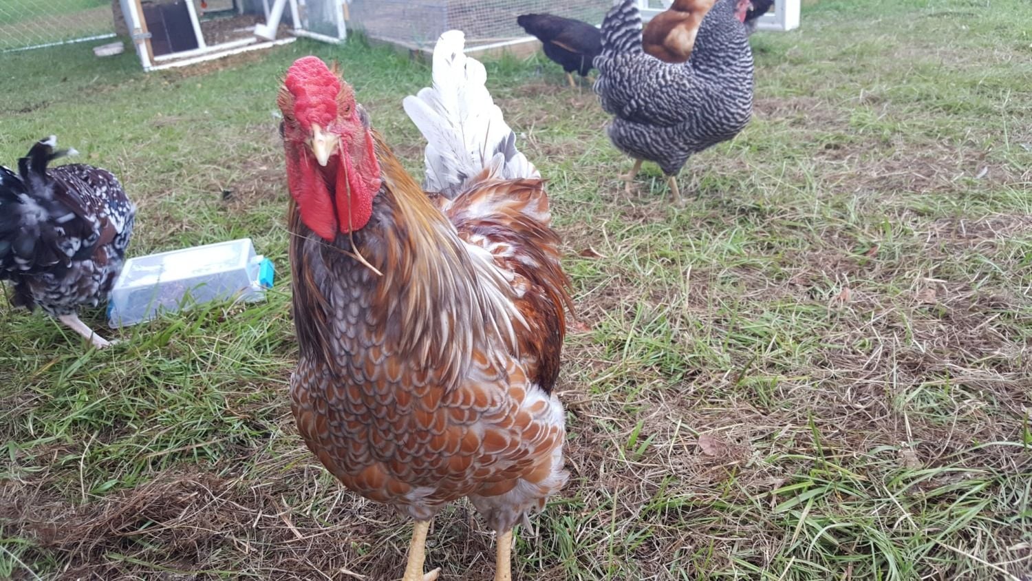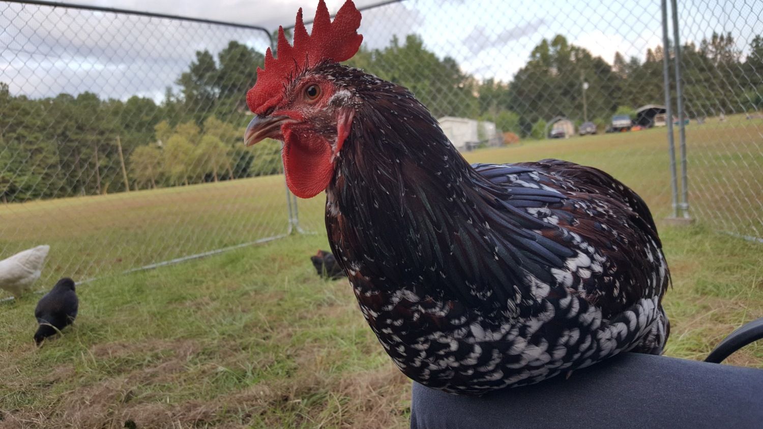 Speckled sussex are known to be a calmer rooster.