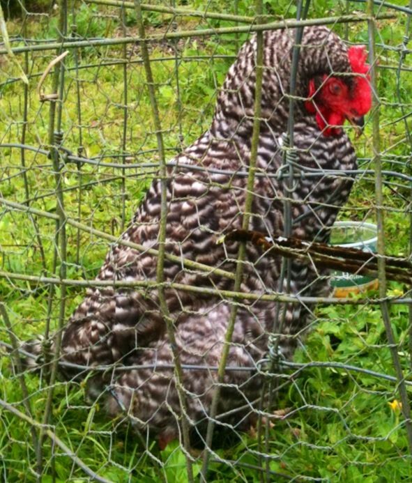 She's normally free range, so I put small cage around her so she can still be with her peers. Any help would be very appreciated. Thank you for reading.