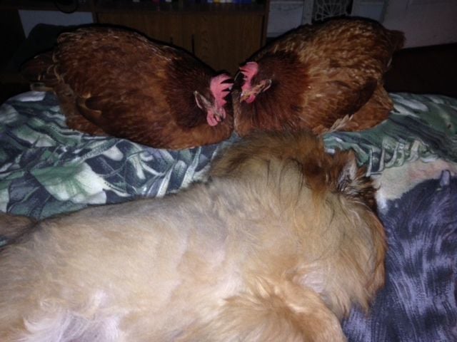 Thank you!Nice action shot of Lily, and that's a classic chicken in your face photo of Daisy.