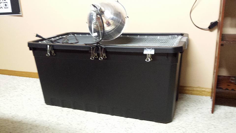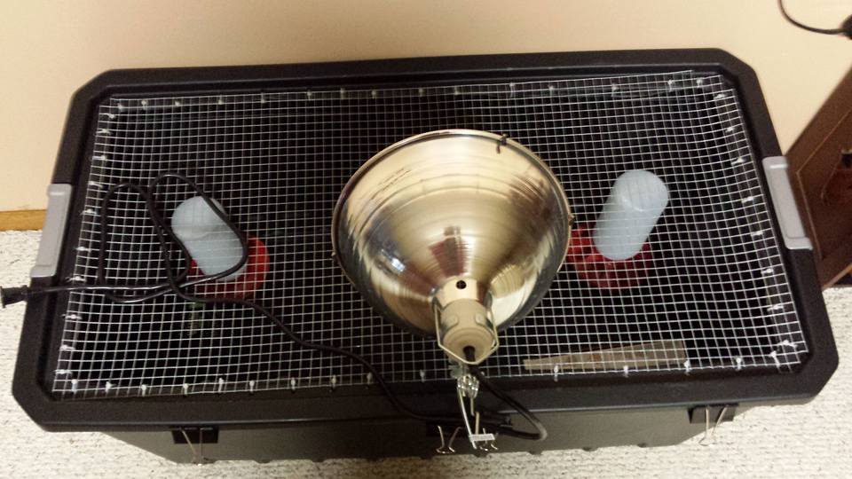 I don't have my brooder yet but I am getting it ready for February/March when I shall be getting chicks. So Far I have the basics set up with a few more things I need to get. Having raised pocket pets my whole life I modified the bin cages I use to make for mice, gerbils, and hamsters. It is very successfully cat and dog proof so neither animal can get inside with a locked lid. I am getting a thermometer for it and maybe hanging a feather duster for the babies to sleep under and put in some low perches so they can start teaching themselves how to perch. Also going to build a stand for the heat lamp to put it back more but ensure it won't fall over. Any other tips you can give me? Oh, also getting small bricks to put the food and water containers off the ground too. Going to be using wood shavings as bedding.