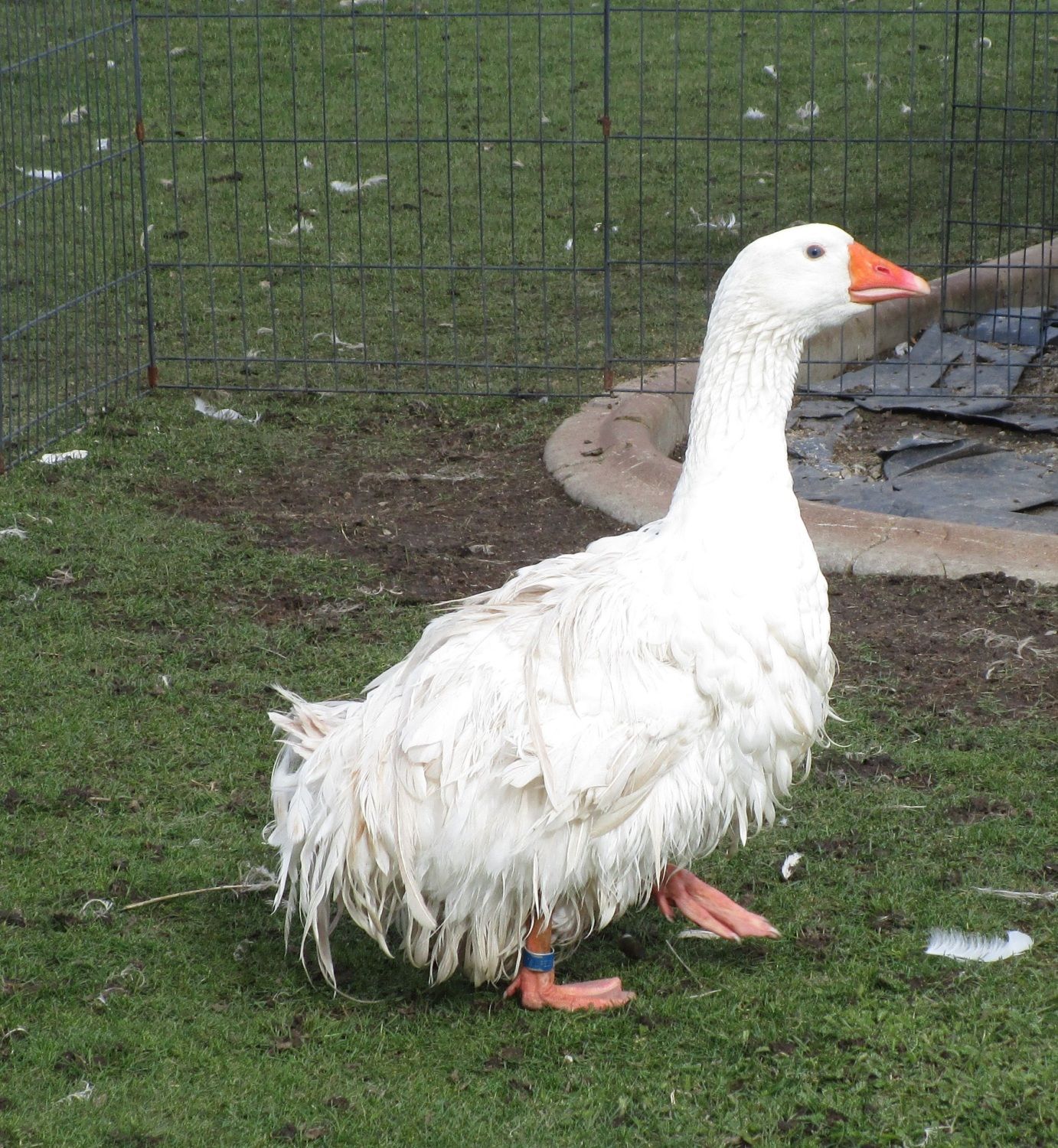 2014 White Curly Sebastopol Goose #14-08 This girl is a proven breeder. Box charge is $35 plus actual shipping. Please make sure there are no additional tests to import to your State. NPIP & AI clean. She is wet in the photo, has more curl than what is showing.