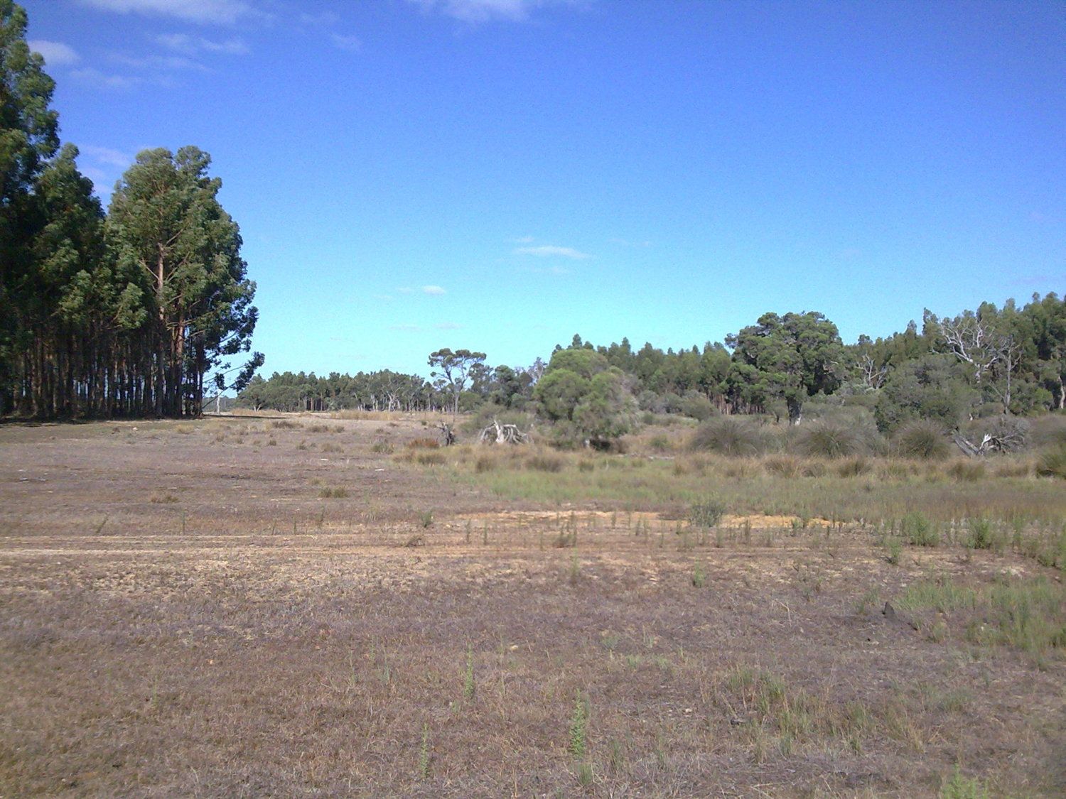 for a start, a track across the foreground and a block of commercial gums on the left. (You’re forgiven for not noticing the other block at the back.) So, this is a ‘human-shaped environment,’ as so much present good emu territory is. Sadly.