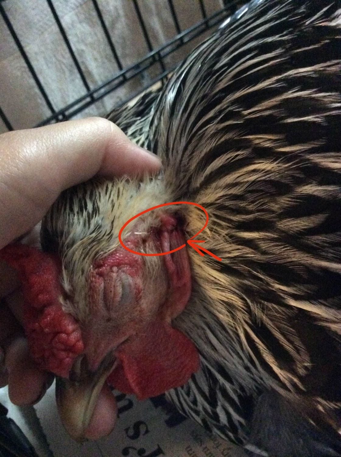 shes got a bad cut on the side of her face, on her wattle, and shes slumped over. She isnt opening her eyes at all, and all shes doing is slowly opening and closing her beak