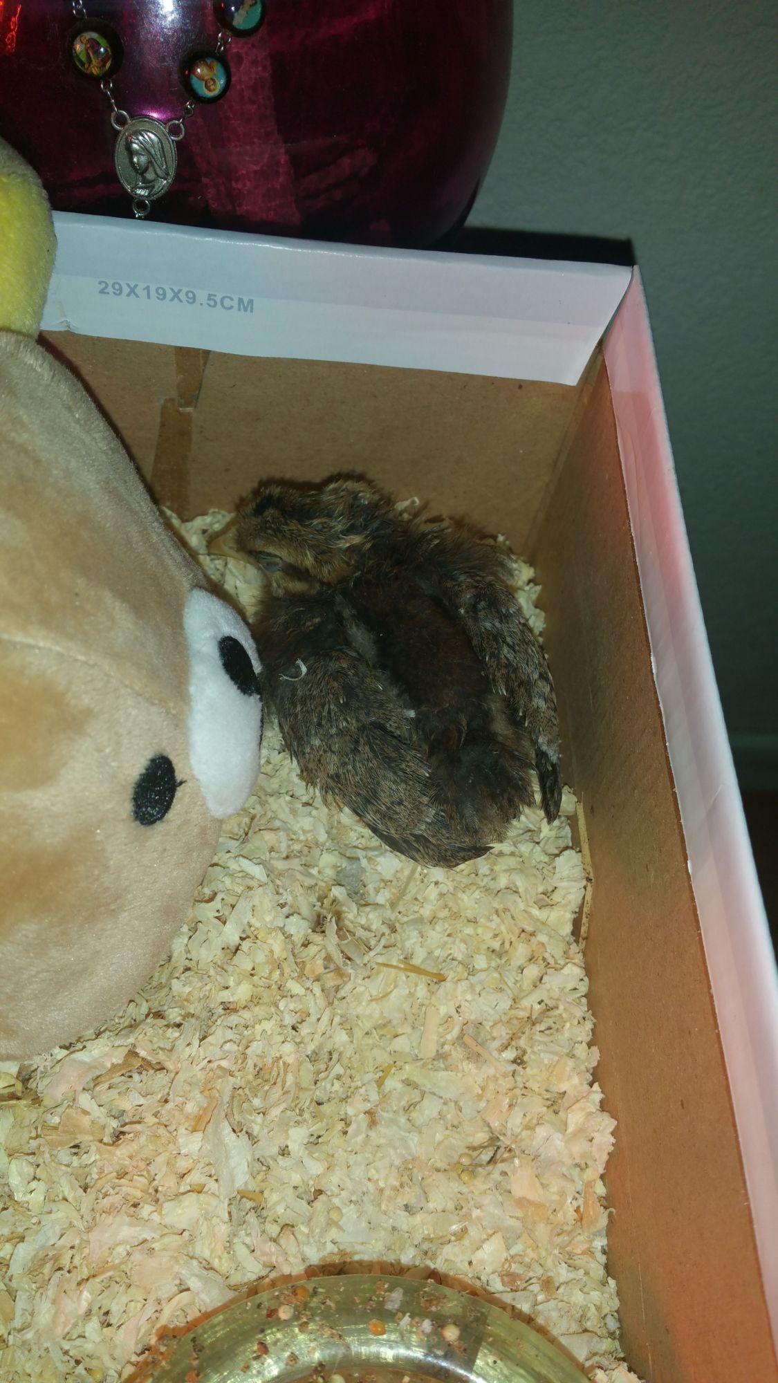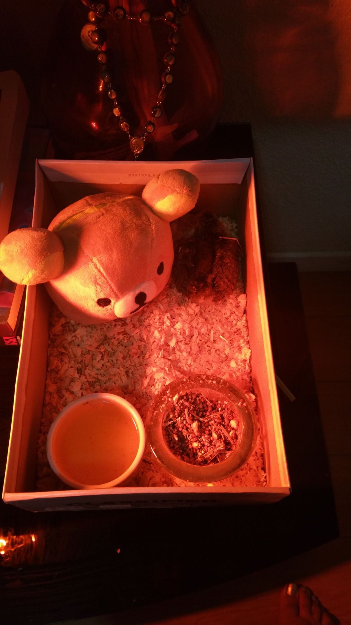 Anyways, Avery is in a shoe box with pine shavings and a heat lamp right now since she is only about 1.5 weeks old.