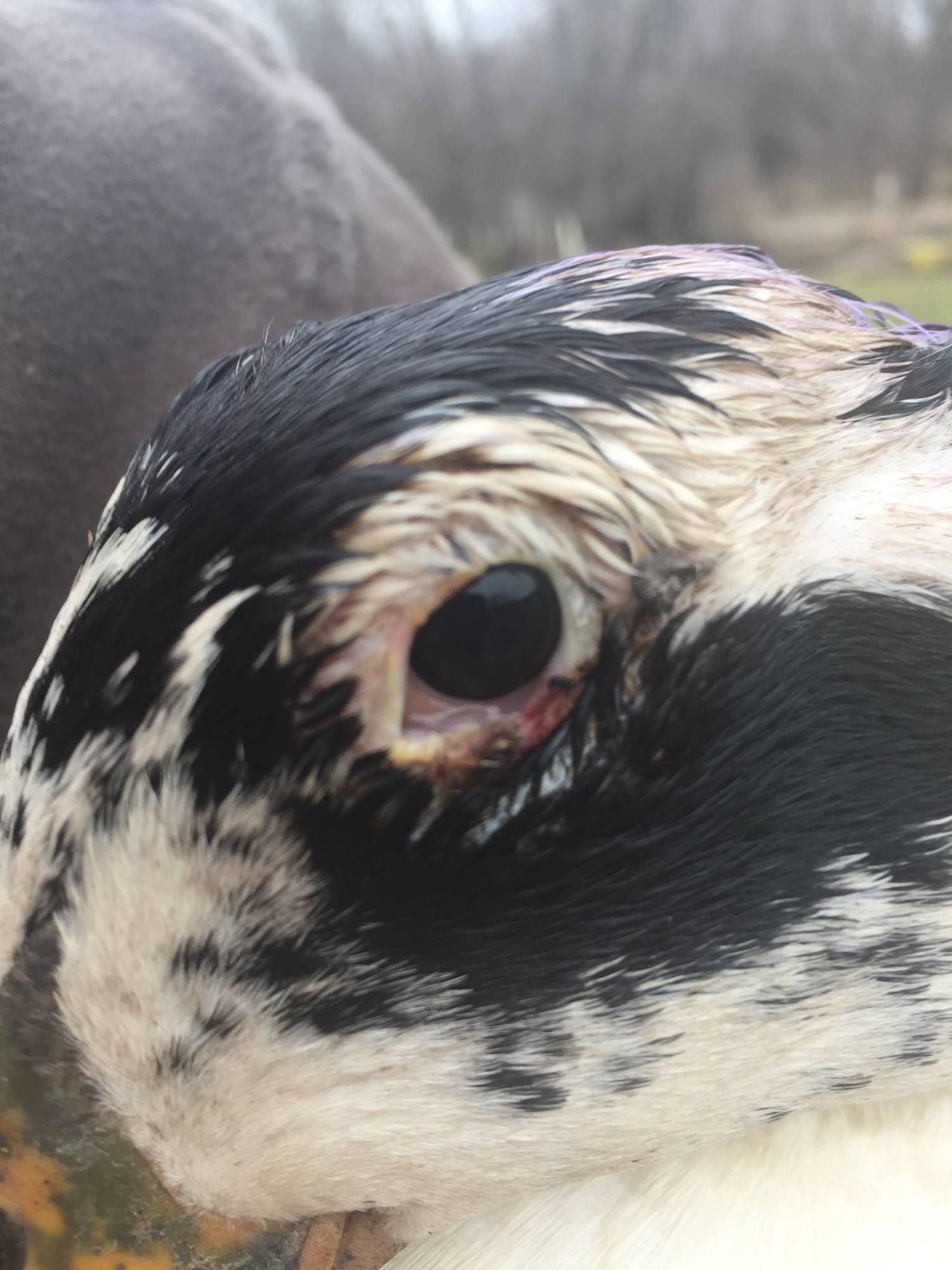 My poor girl got hurt from breeding. I cleaned her up and put blue kote on her head wounds. Her eyes are hurt also. What should I do? Also I noticed bubbles in her eyes and another females eyes??? Last questioned..when is breeding season over? (I have 2 drakes 6 hens). I did leave the drakes in the pen so they couldn't get to the girls today.