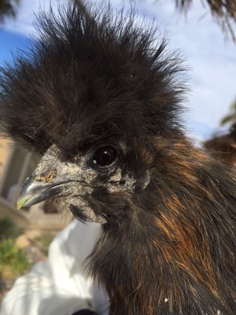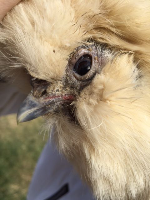 I've been dealing with skin issues with my flock for a couple of months now. At first I thought they were having eye issues, as the areas around the eyes were very crusty. At that time, I was applying Terramycin, but nothing improved. Then I started applying Vaseline to the areas, thinking it was dry skin, but after a couple of days it's back to the chalking/powdery white stuff.